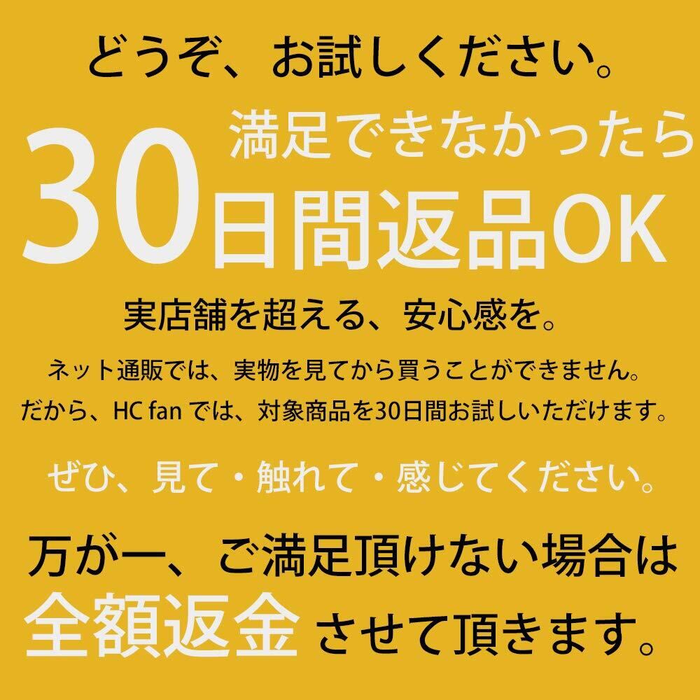 インターネットショッピングは、商品をお手に取って確認できません。だから、HC fan は 30日間 お試しでお使いになられることをお勧めしています。イメージが違ったらどうしよう?合わなかったら嫌だな。そんなご心配にお答えしました。当店ではご使用になられても30日間、返品・返金保証をお付けいたします。 .