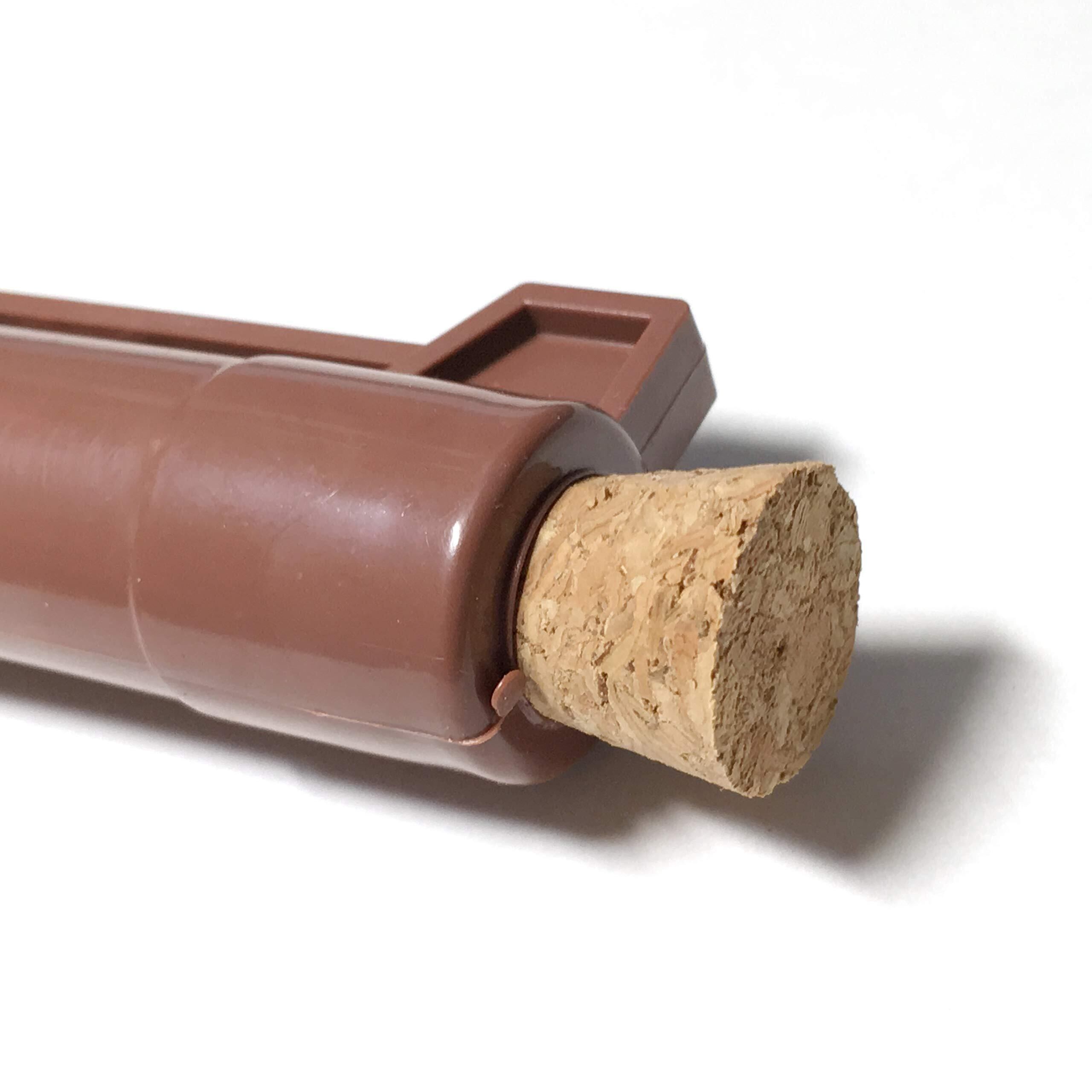 サイズ 短径:9.8~11.2mm(ベル玩菓コルクガンに適合します) 長径:14.3~15.3mm 長さ:11.7~12.4mm 重量:0.46~0.56g/個 不良率:約1% ご必要なサイズをよくお確かめの上、お買い求めください。コルクガンの引き金を引いても玉が飛ばない場合は、ゆるめに玉を詰め直してください。