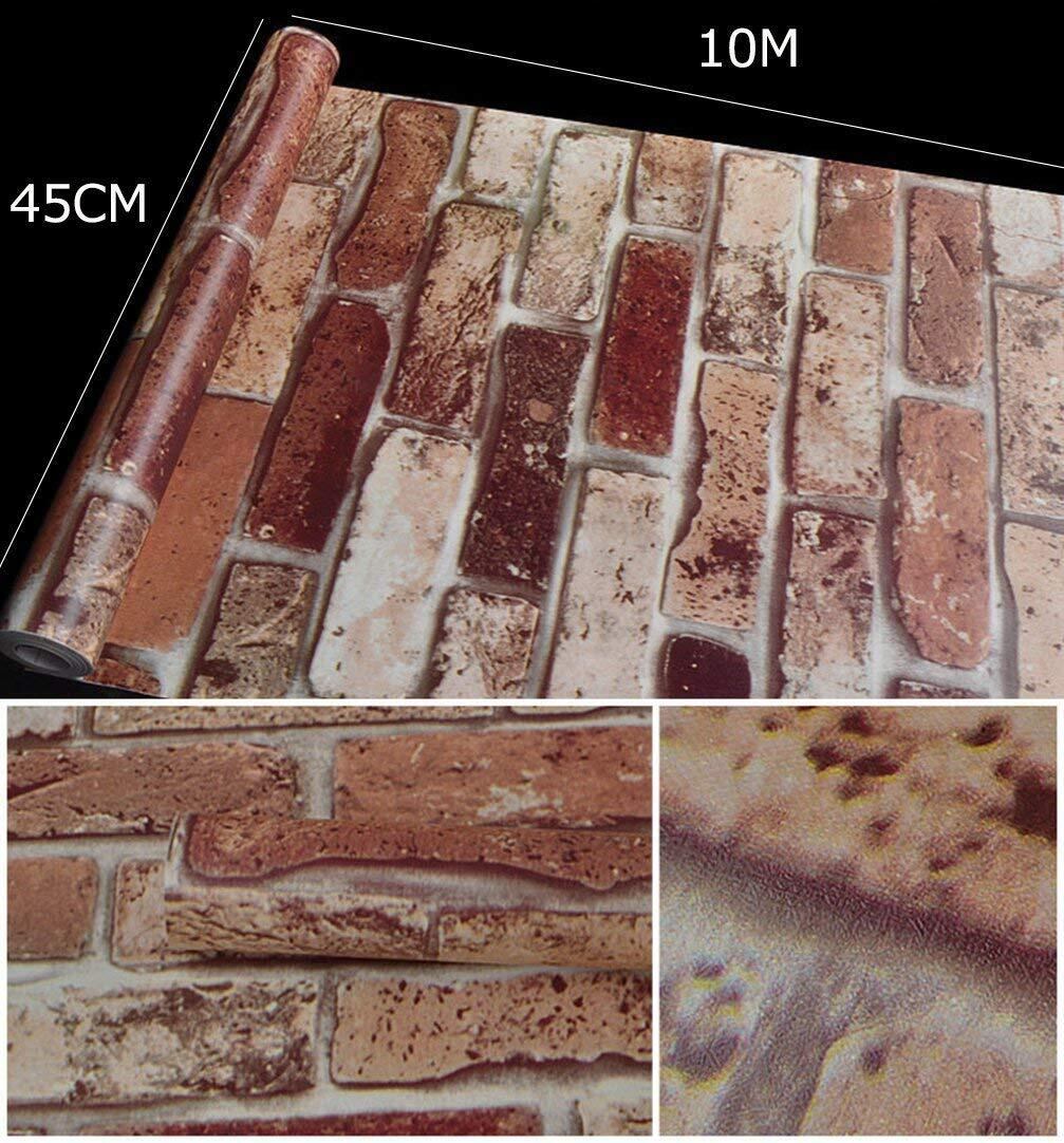 EASYLEE 壁紙 シール レンガ はがせる壁紙 ウォールステッカー 厚手45cm×10m リメイクシート おしゃれ ステッカー シール カッティング DIY 透けない 接着剤不要 防水 防汚 防油 防カビ 耐熱 多用途 模様替えインテリア 応接間 ベッドルーム キッチン 台所 玄関 家具 補修リフォーム (USレンガ)