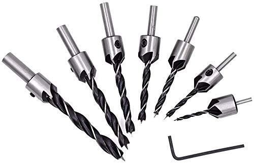 【特価商品】ZOYUBS 皿穴ドリルビット 7本 面取りカッター 皿取り錐 皿取り錐ドリル 面取りカッター 皿取り錐ドリル ビット 皿取錐 下穴錐 座ぐり 木工用ドリル 木工用セット 下穴ドリルビット 鋭角ビット 高速度鋼製 六角レンチ付き セット 3/4/5/6/7/8/10 mm 7本セット 木工用ドリル 穴あけ 木材 工具 ビット 面取り 下穴 皿錐 (3/4/5/6/7/8/10mm) DIY工具 竹/木/硬質ゴムなどの穴開け 丸軸 木工錐 座掘錐 バリ取り 座ぐり | Premium Stage