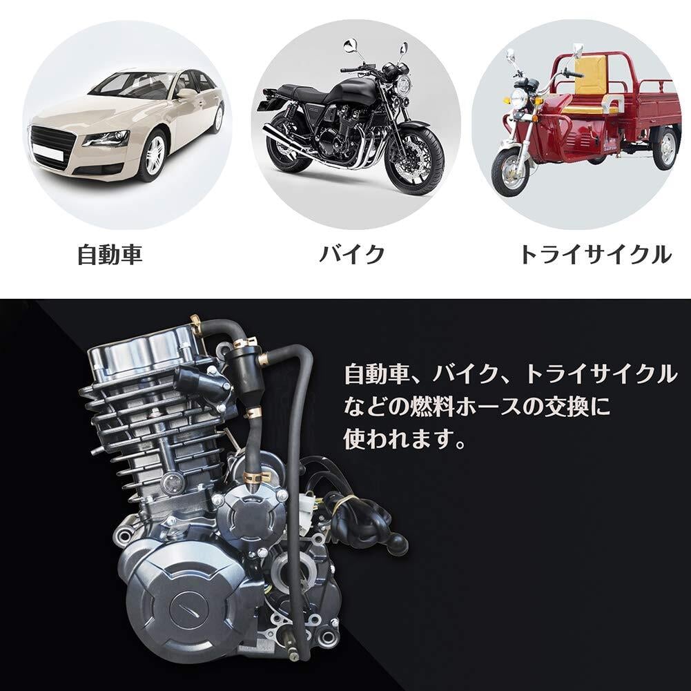InduSKY 燃料ホース 内径5mm 外径11mm ガソリンホース 3層ホース 全長1M 耐油 耐圧 耐候 専用ホースクランプ 5個付き 自動車用 バイク用