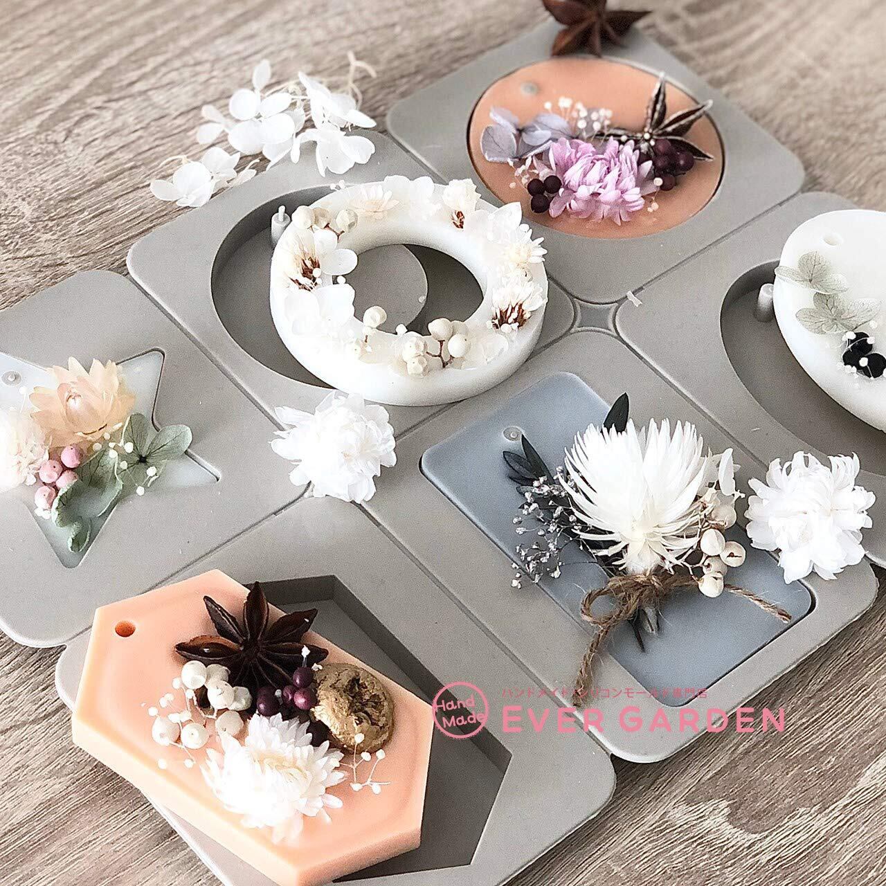 【Ever garden】 リース 丸 丸型 穴あき 通し穴 タイプシリコンモールド レジン アロマストーン 石膏 手作り 石鹸 キャンドル 樹脂 粘土 オルゴナイト バスボム シリコン モールド 型 抜き型 キット ハンドメイド ドーナツナイト バスボム シリコン モールド 型 抜き型 キット ハンドメイド ドーナツ (リース 星)