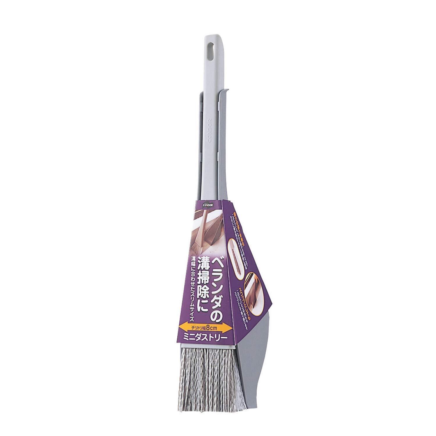 ●ベランダの溝掃除にぴったり!溝のせまい隙間に入り込み、ゴミや泥などの掃除が簡単にできる、スリムタイプのほうきとチリトリのセット