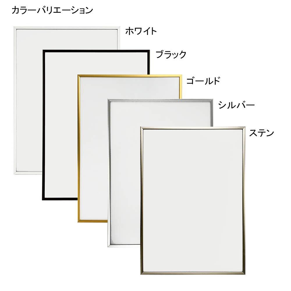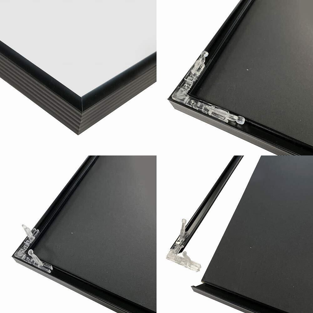 細身なシンプルデザインでありながら、ハイエンドモデルのクオリティをあわせ持つアルミフレームです。特にポスターなどを飾るのに最適です。ポスターの他にも、中台紙を1枚はずすだけで最大3mm厚まで対応。作品の出し入れは、コインで回せるネジ2個をゆるめるだけ。タテヨコどちらでも使用出来ます。吊下げ用のヒモ付属。