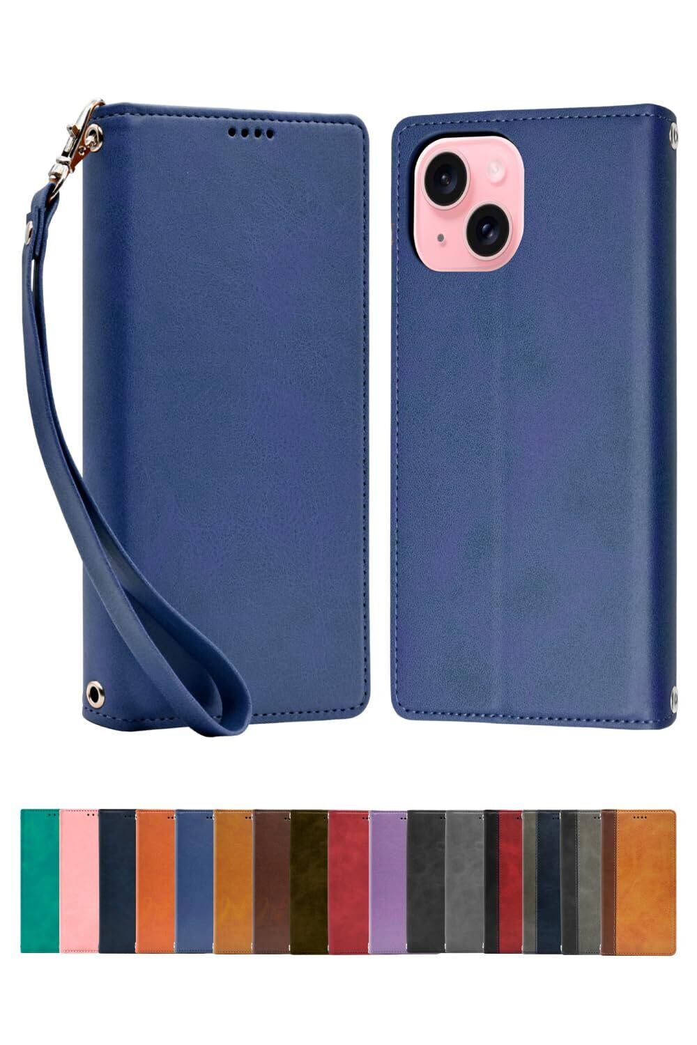 シズカウィル iPhone 15 用 ケース カバー 手帳型 本革調 レザーケース ブルー 1個入り