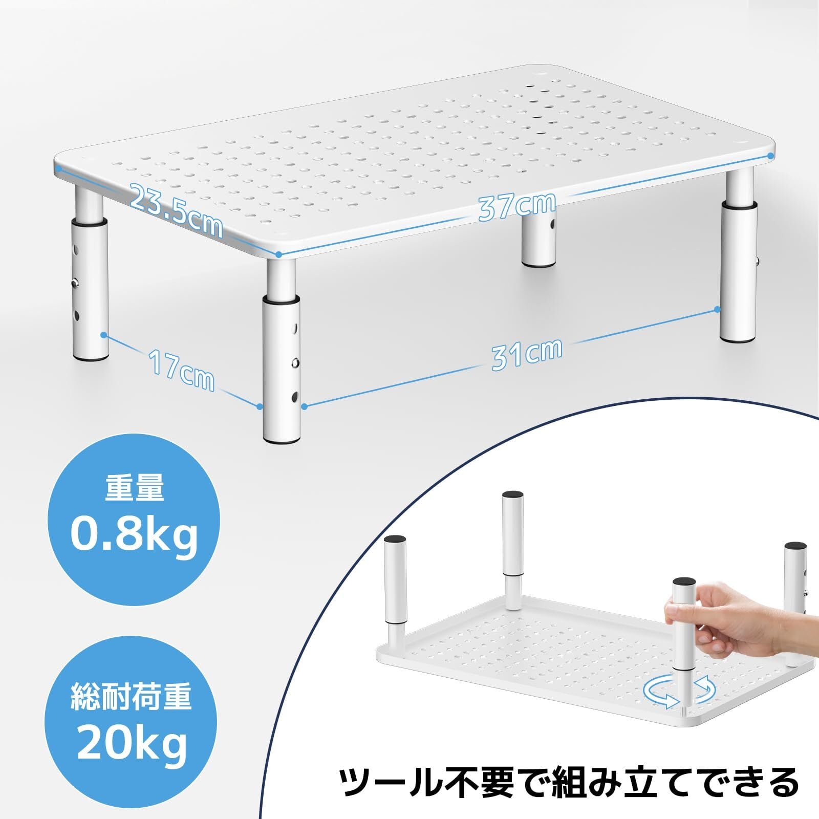 WORLDLIFT モニター台 机上台 PCモニタースタンド スチール製ノートパソコン台 耐荷重20kg 幅37cm 高さ調整可能 白 ホワイト