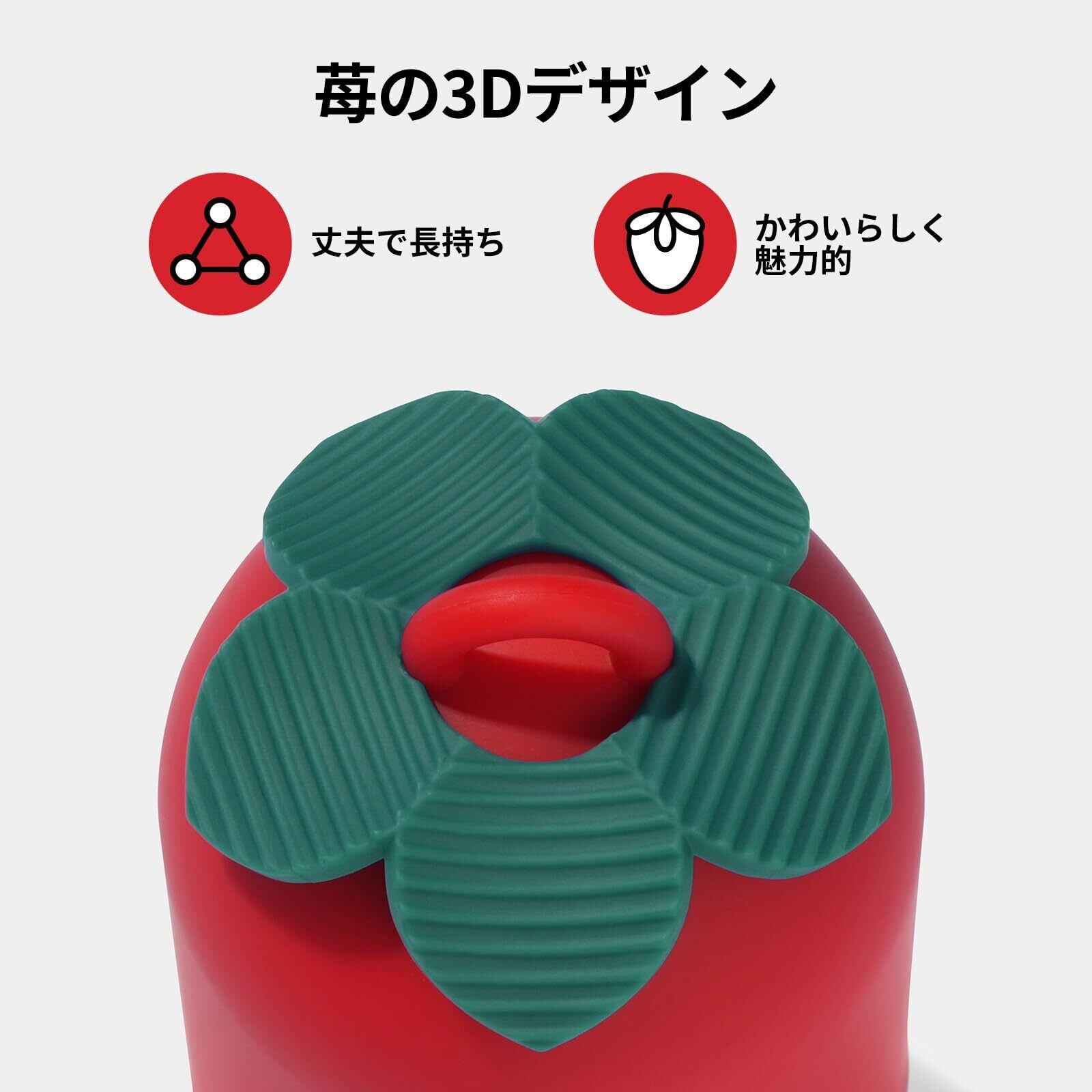 【苺のデザイン】苺 ディスペンサー エチケット袋 セットのディスペンサーには3D立体の苺が可愛く目立ち、エチケット袋には苺がデザインされています。