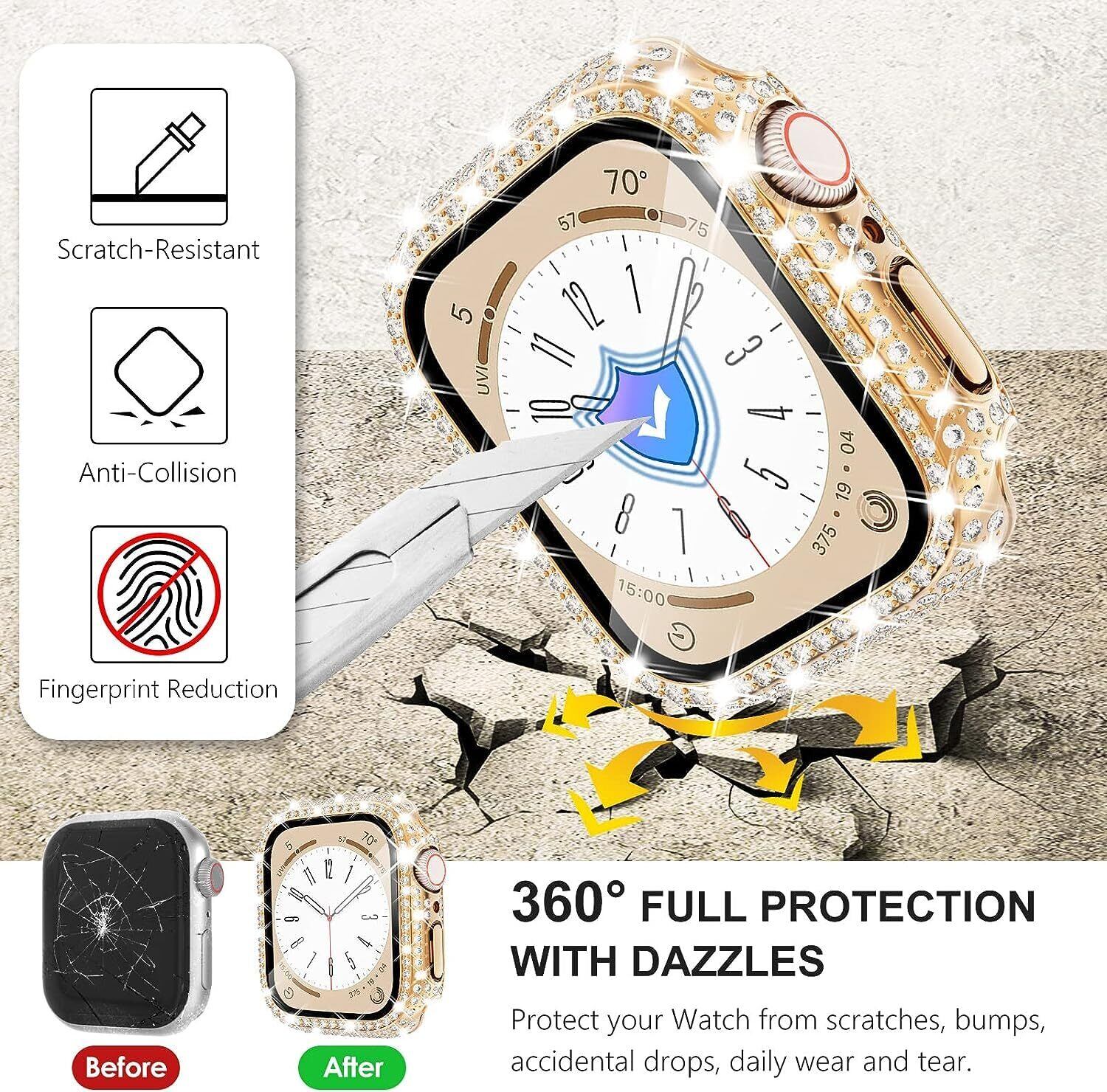 【360度防水ケース】 アップルウォッチ 防水ケース キラキラ クリスタルダイヤ付き ガラスフィルム 一体型 Apple Watch カバー 水泳・スポーツ専用 カバー 49mm 45mm 44mm 41mm 40mm ダイヤモンド bling 光沢 IP68完全防水 iWatch ケース Series 8 7se 6 5 4に対応 お洒落 女性専用 強化ガラス 傷防止 軽量 防塵