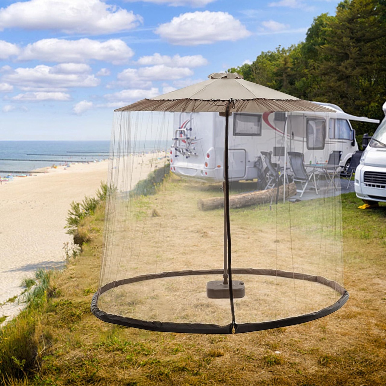 カバー力 紫外線カット・防虫機能付き高密度メッシュ素材、耐水性と通気性を兼ね備えたデザイン