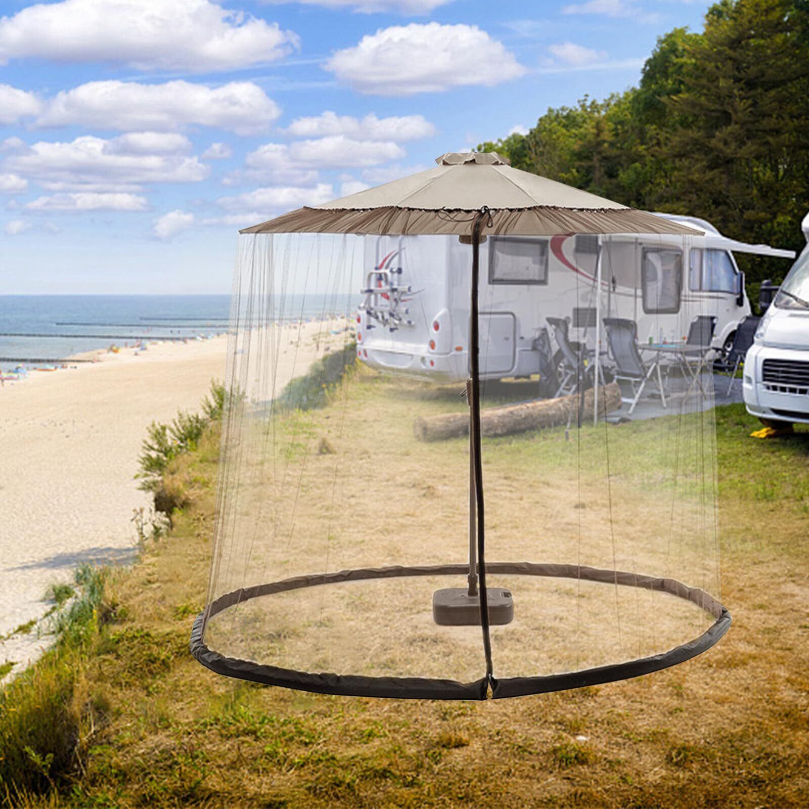 【LEISURE CLUB】蚊帳 キャンプ タープテント 防虫ネット ガーデンパラソル 大型 パラソル アウトドア キャンプ 用品 虫除け対策 紫外線対策 耐水 換気設計 簡単な取り付け (ブラック 最大の適合性 3 x 3 x 2.3 m 対応)