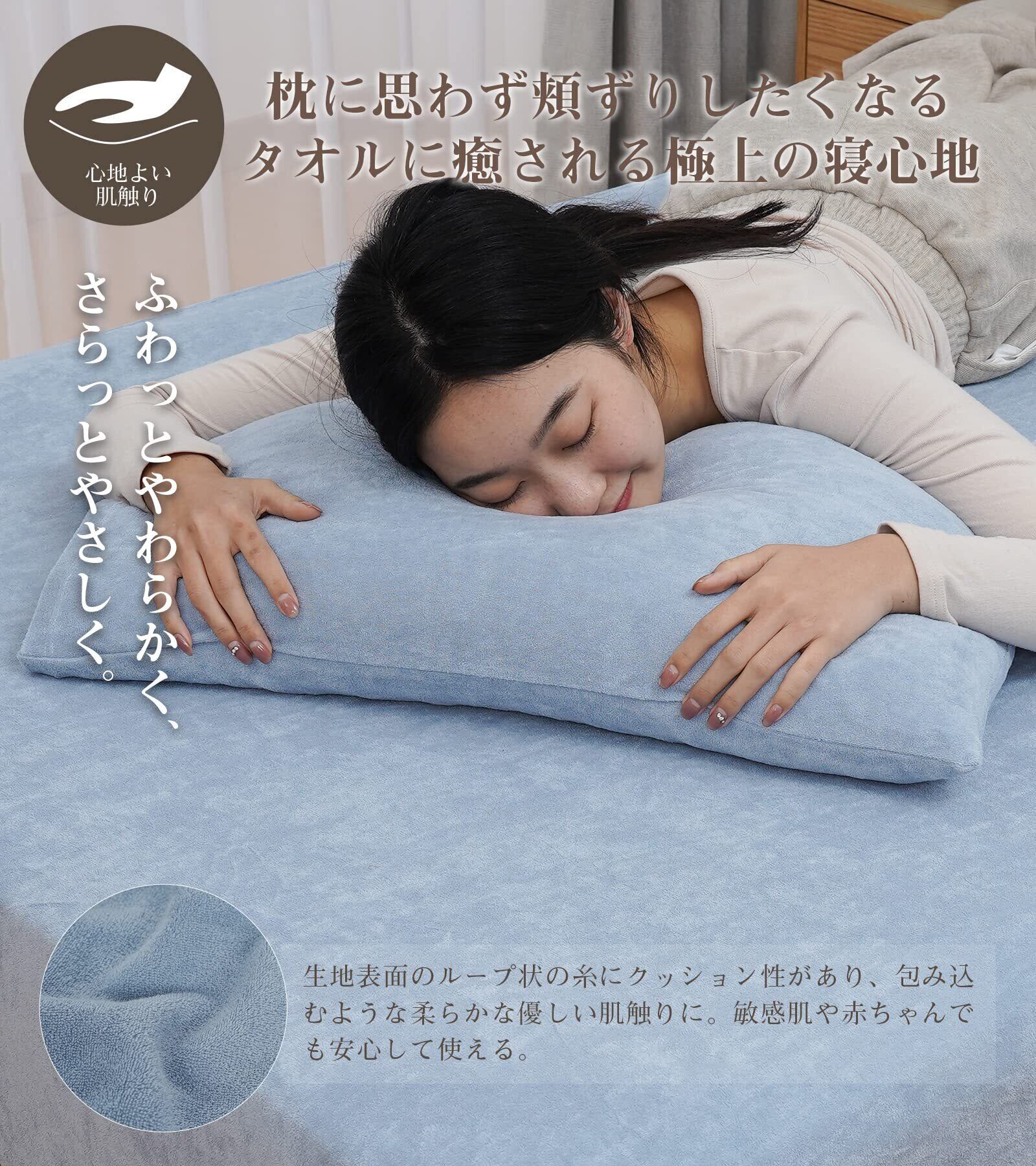【抗菌防臭・オールシーズン使える】抗菌防臭加工で細菌の増殖を抑制し、防臭効果を発揮します。吸水性が高い枕カバーは寝汗素早く吸収し、サラサラカバーです。コットン素材のパイル地は、夏の汗対策や冬の寒さ対策に効果があり、一年中オススメ。