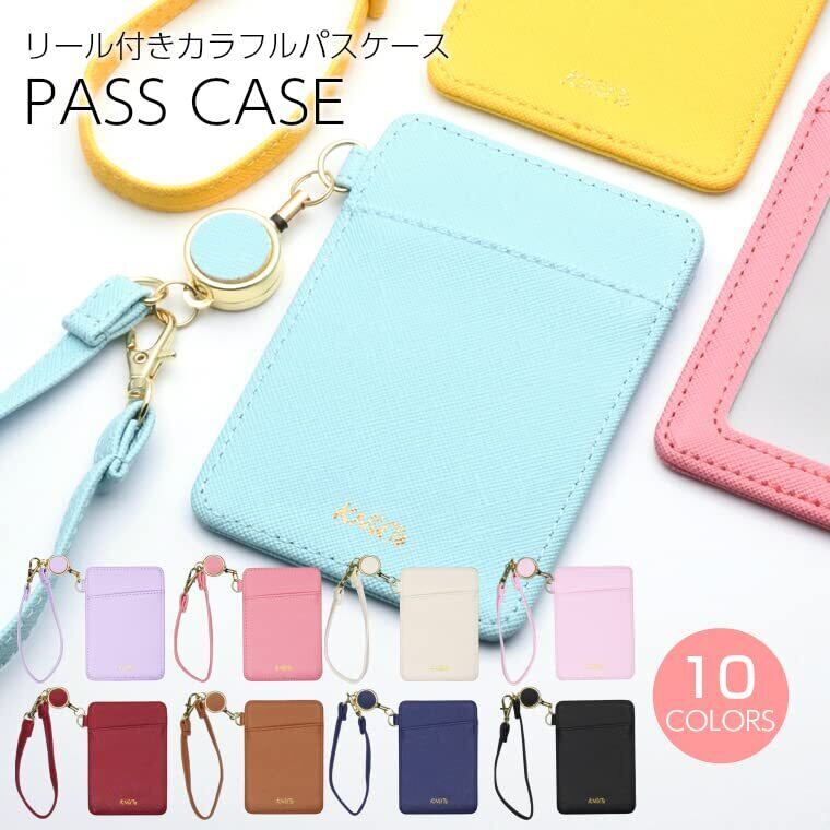 高品質PUレザー素材を使用したリール付きパスケース。上部取付タイプ。サフィアーノ加工により水に強く、耐久性に優れたデザイン。