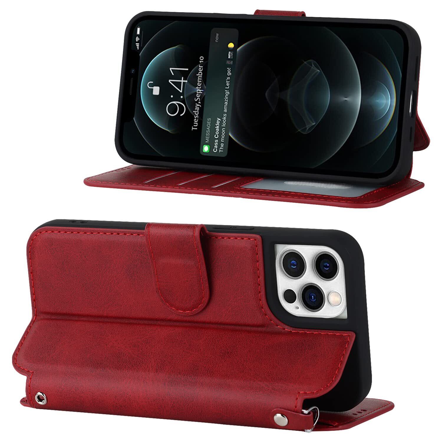 iPhone12pro Max ケース 手帳型 ショルダー 両立 軽量化 ショルダーケース クロスボディ iPhone 12 pro max アイフォン12promax ケース アイホン 12proMaxケース iPhone12proMax ケース アイフォン 12pro max ケース アイフォン 12 プロ マックス カバー アップル アイホン12プロマックス 携帯ケース 12プロmax iPhone12pro max スマホケース 手帳型 適用 case 【iCoverCase】 ストラップホール付き カード収納 スタンド ストラップ 二本同梱 マグネット 肩がけ 首掛け 斜め掛け カードケース ストラップ付き カバー ショルダーケース クロスボディケース カード入れ スマホケース 携帯カバー レトロ ワインレッド
