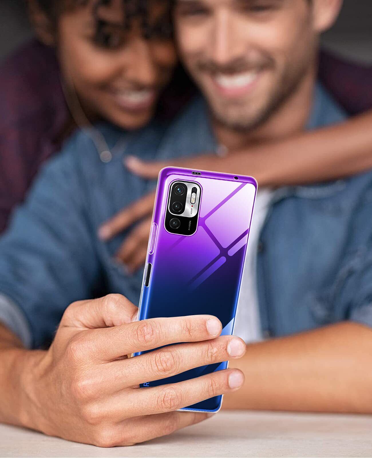 Xiaomi Redmi Note 10 JE ケース Redmi Note 10T ケース クリア 薄型 TPU 耐衝撃 グラデーション色 ケース 指紋防止 ストラップホール付き 擦り傷防止 軽量 人気 スマホケース カメラ保護 スマホケース Note 10 JE 専用 パープルブルー