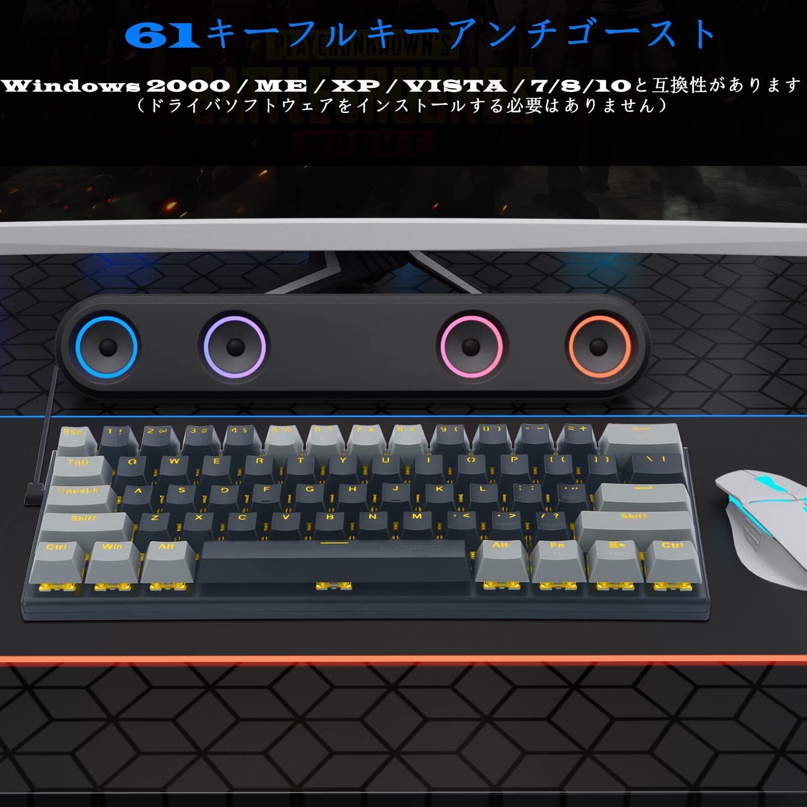 【2022最新】e元素メカニカルキーボード61キー 青軸を採用のゲーミングキーボード 黄色のLEDバックライト付き 60%小型コンパクトキーボード USB有線英語配列 Windows/Macに対応ゲーム用キーボード (ブラック+グレー,青軸) | Premium Stage