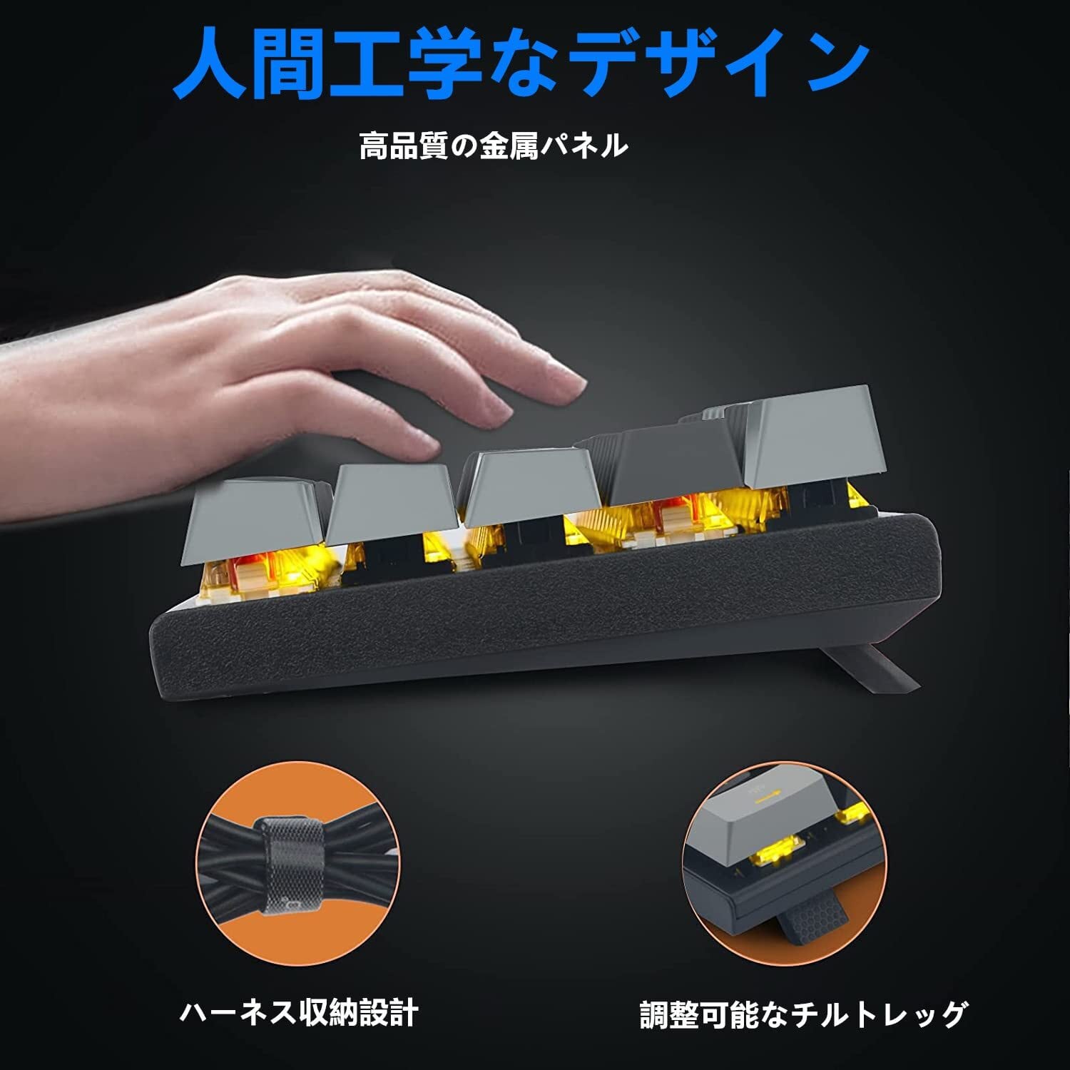 ️【青軸を採用】▶ 軽快でさっぱりとした打鍵感と、カチッカチッとした小気味いい打鍵音。メカニカルキーボードの特徴で最もあるの高品質な青軸を採用し、接点部にはっきりとしたクリック感があります。心地よいクリック音と軽いキータッチで高速入力にも長時間入力にもストレスを感じません。長い文章などを打ち込むことに最適です。キーを押すたびに素晴らしい触覚フィードバックを提供します。▶ギフト:キーキャッププーラー*1;Escキー+スペースキーのキーキャップ(オレンジ色) *1。