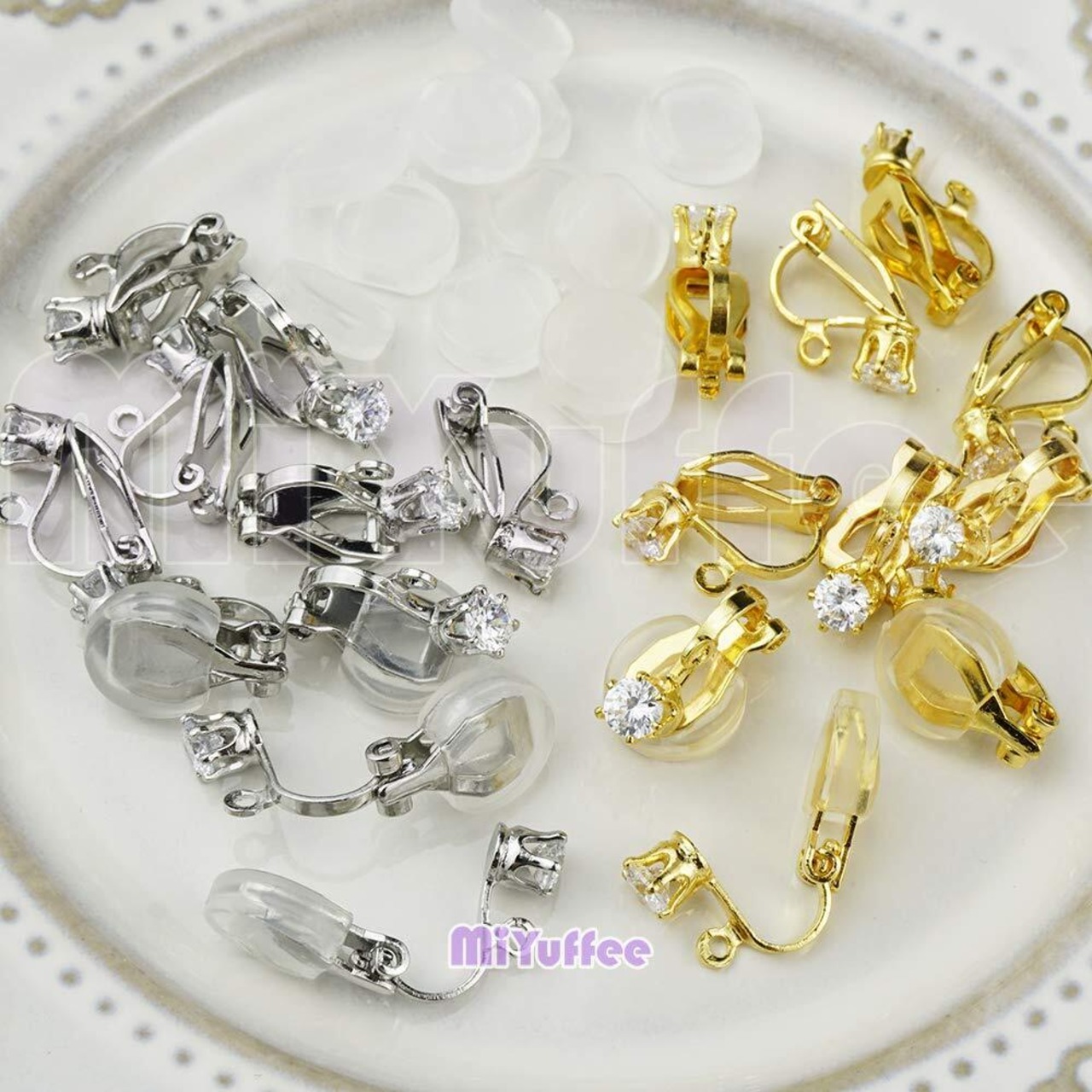 素材:真鍮、シリコン 個数:10ペア20個 カラー:ゴールド・シルバー(本体)・クリア(ラインストン)・半透明(シリコンカバー) サイズ:画像をご参考ください