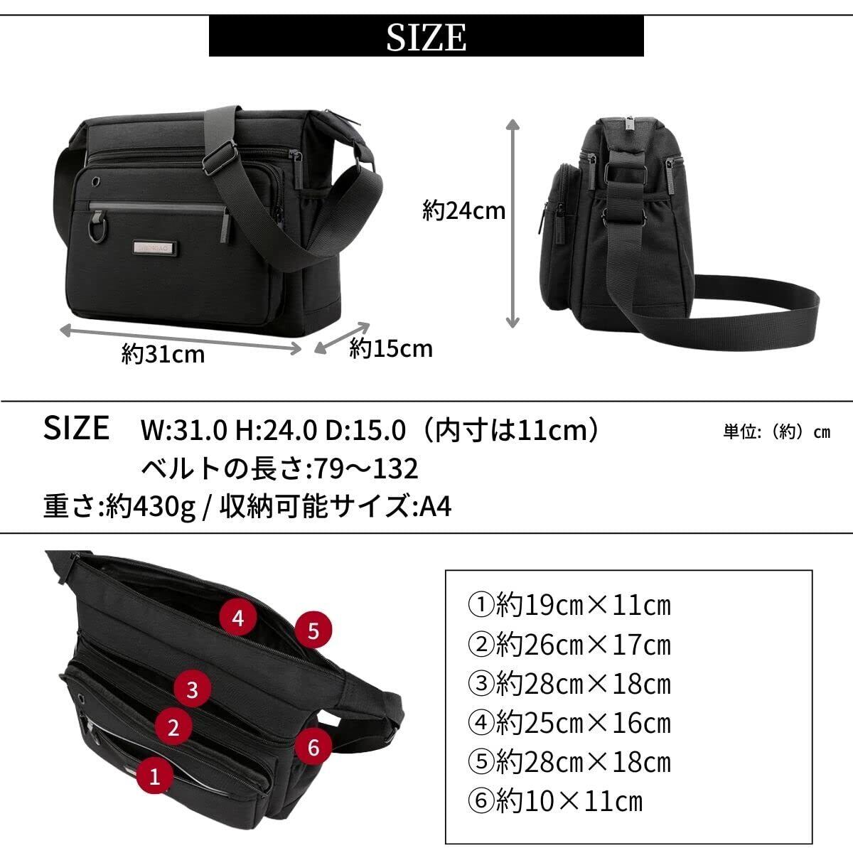 [SHARE ITEMS] ショルダーバッグ メンズ ナイロン バッグ ポケット多い 大容量 斜めがけ 普段使い 肩掛け 軽量 丈夫 カバン 通勤 通学