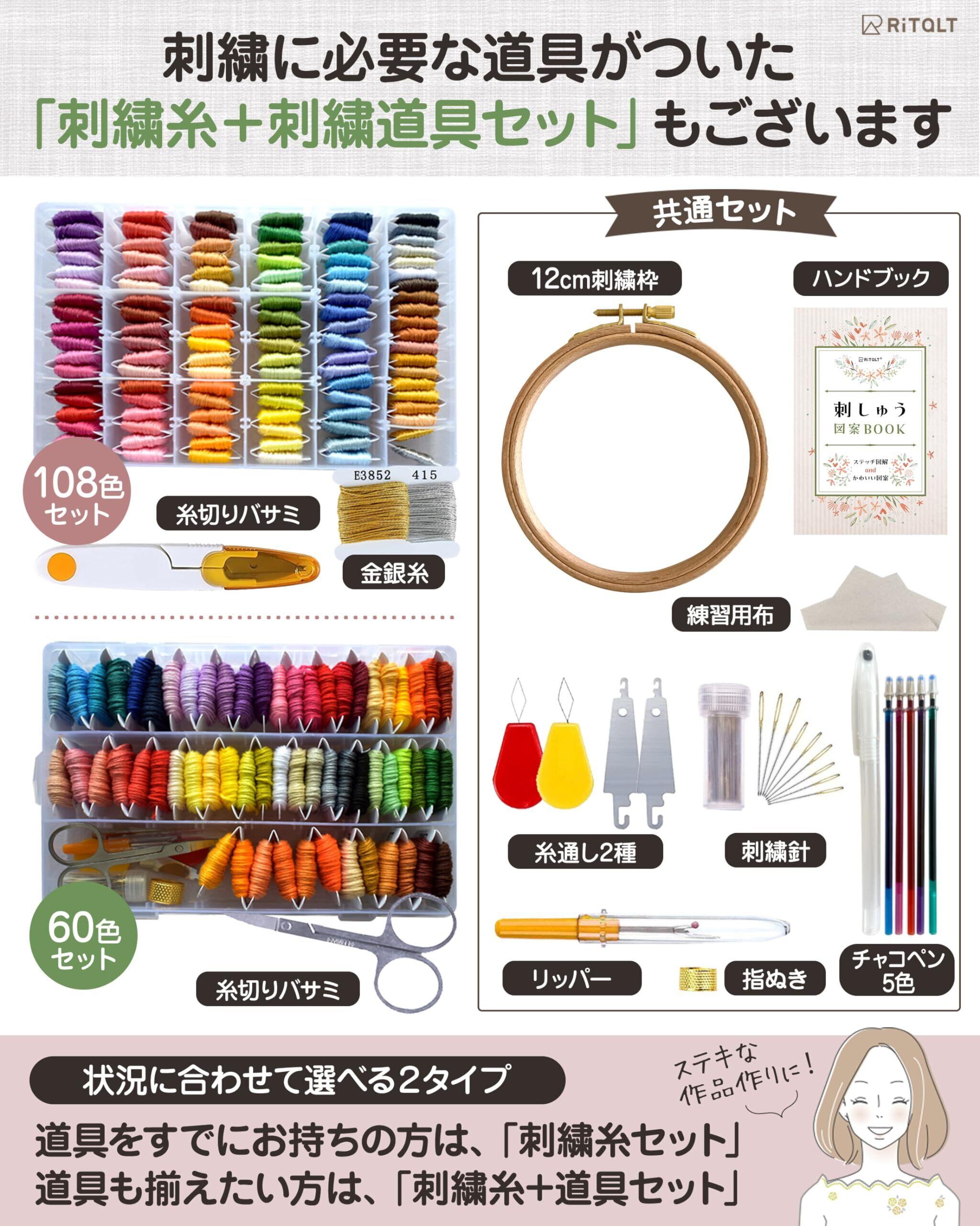 RITALT 刺繍糸 セット 収納ケース 60色 (25番/8m/6本綴り/カード巻き) 糸巻き