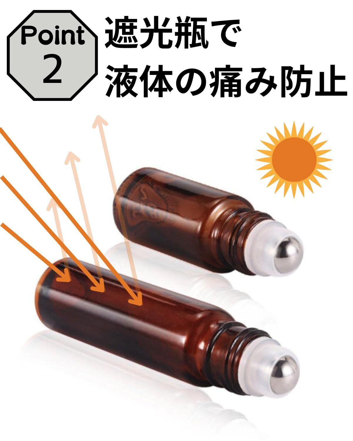 【適量出るロールオンボトル】スレンレス製のボールで適量の液体を抽出しながら回転します。出しすぎることやこぼすことがないので便利です。 【遮光タイプで痛みの防止】遮光瓶により中身の痛みを防止し、香りや品質を長期間保つことが出来ます。 【ボトル20個&詰め替えに便利な漏斗付き】ロールオンボトルはたっぷり使える20本!付属の漏斗を使用することにより、詰め替えの際にこぼしにくくなります。 【商品詳細】容量:10ml (底直径16mm×高さ86mm)、本体:20本、漏斗(PP製):5個 【安心の30日間保証】商品品質には万全を機しておりますが、万が一初期不良等発生した場合はご購入から30日間に限り新しい商品と交換対応いたします。Chocopleオリジナル梱包にてAmazon倉庫から迅速にお届けいたします。