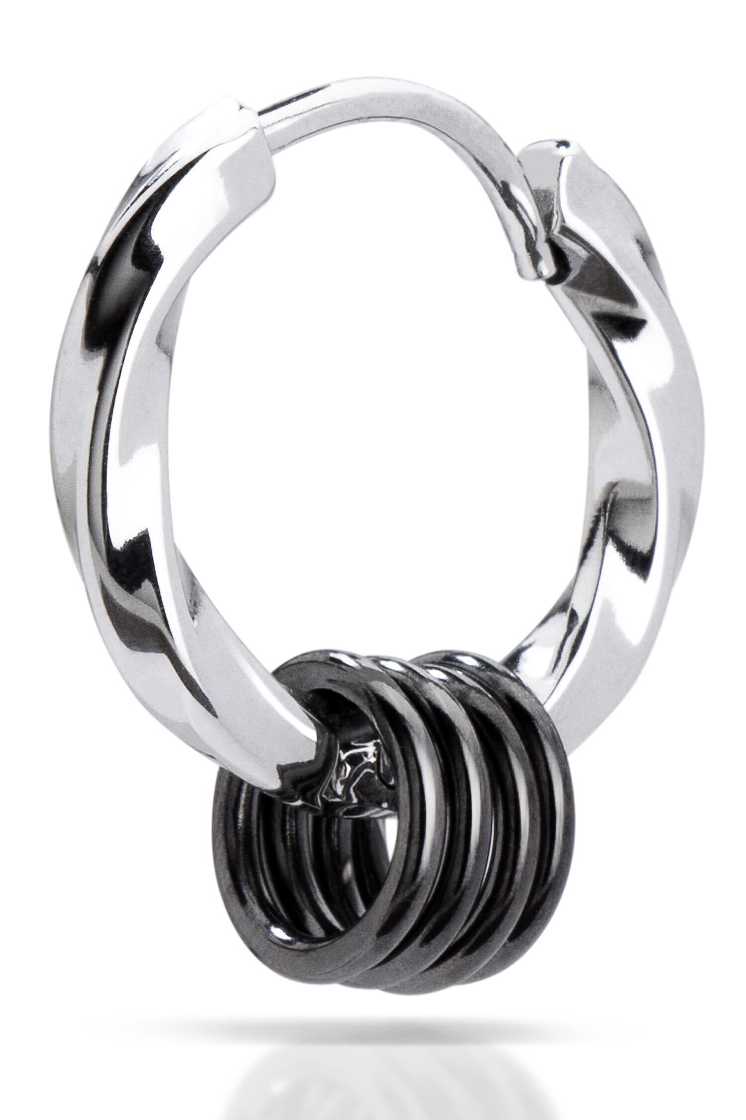 【個性が光るマルチリングデザイン】シャープ目なツイストデザインに、マットに光る黒のミニリングで個性を主張。大き過ぎないサイズ感でも、しっかり存在感のあるピアスです。