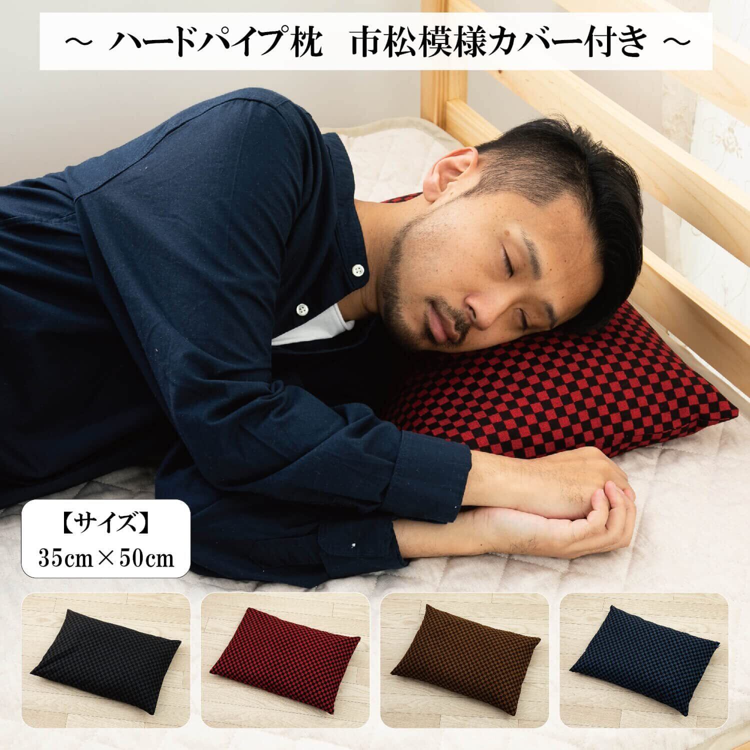 枕 パイプ ハードパイプ まくら 高め 硬め タイプ 高さ調整 可能 市松模様 枕カバー 付き (紺, 35×50)