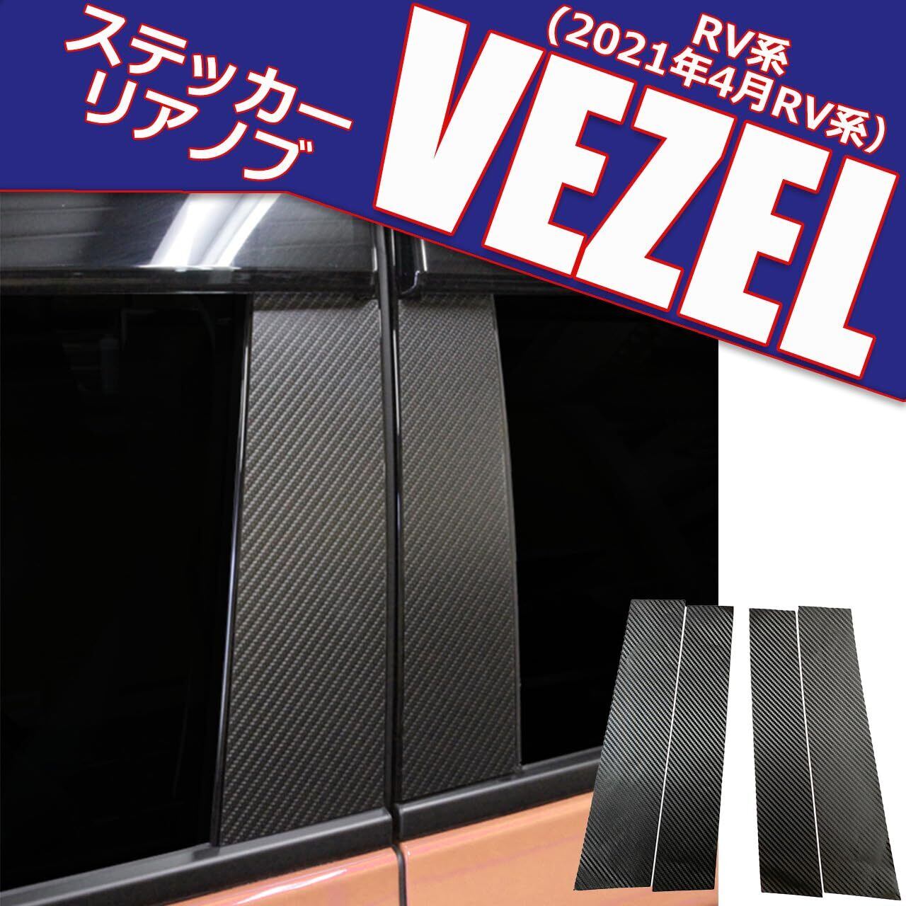スタートサイド ホンダ新型ヴェゼル 2代目 2021年4月 RV 車対応 パーツ アクセサリー プロテクト カーボンステッカー RV系 (3点セット フロントドア+サイドピラー+リアノブドア)