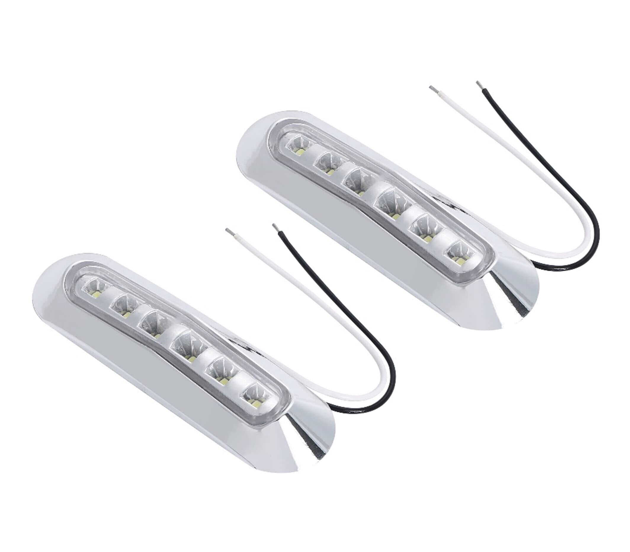 マーカーランプ LED 12V-24V トラック サイド ライト 路肩灯 6連 発光 メッキカバー付き 小型 中型 サイズ カラーレンズ 2本 セット (ホワイト)