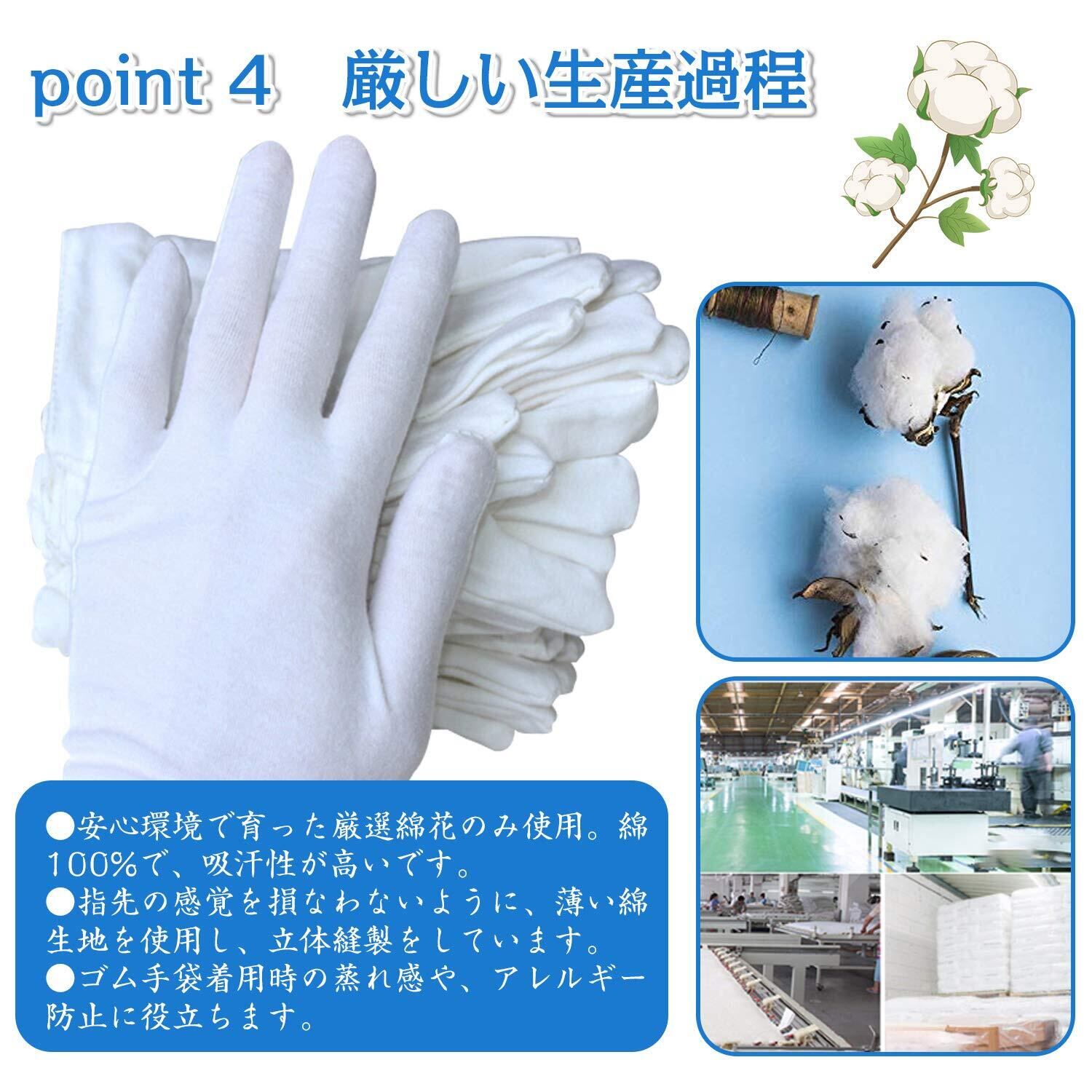【用途広い】様々な場面に使われます。運転、工場で作業、サービス、礼装など、用途に合わせて気軽に使用できるコットン手袋です。手荒れ・主婦湿疹・乾燥・冷え・アトピー等車運転用、園芸用、日焼け防止、防寒用等に、安心してご利用いただけます。