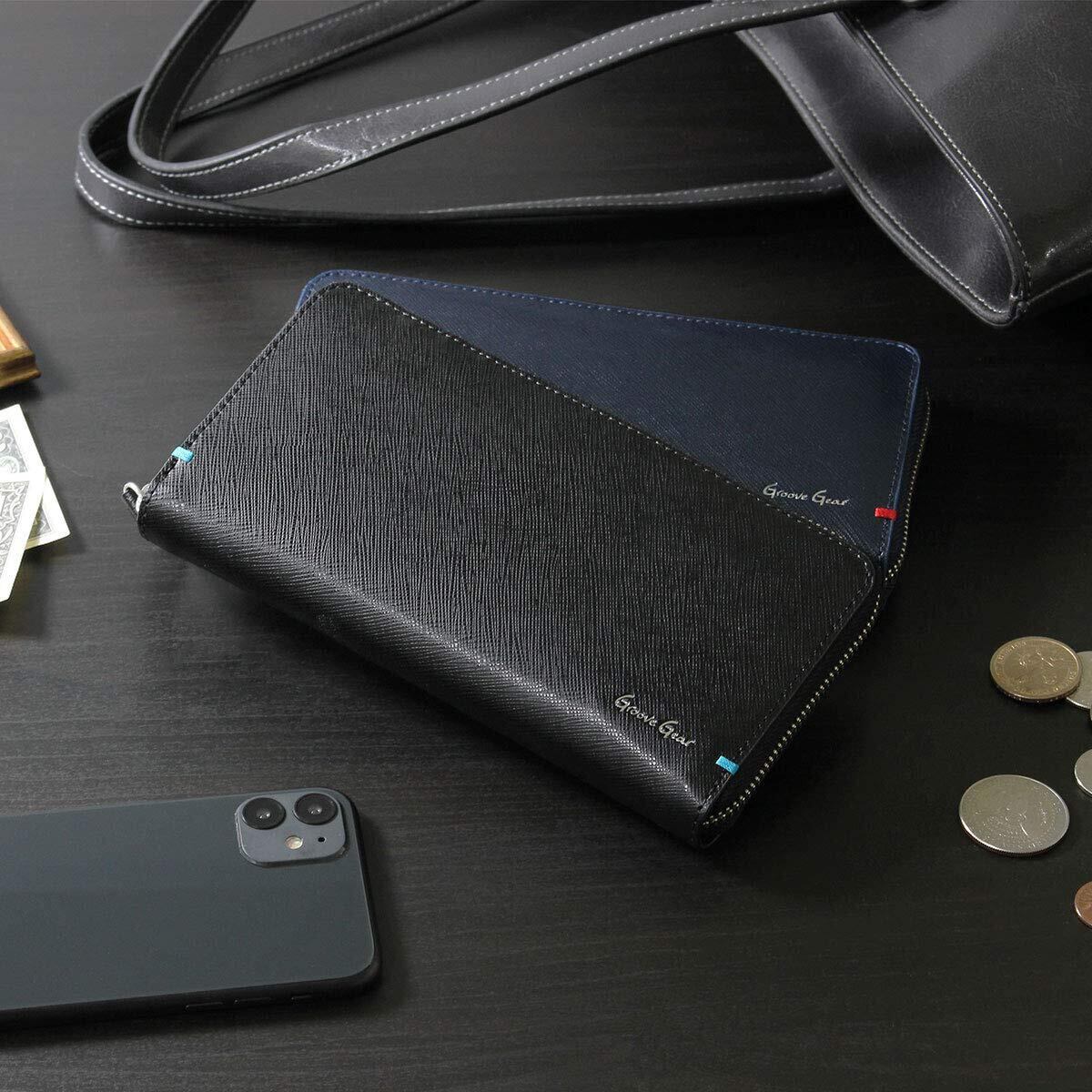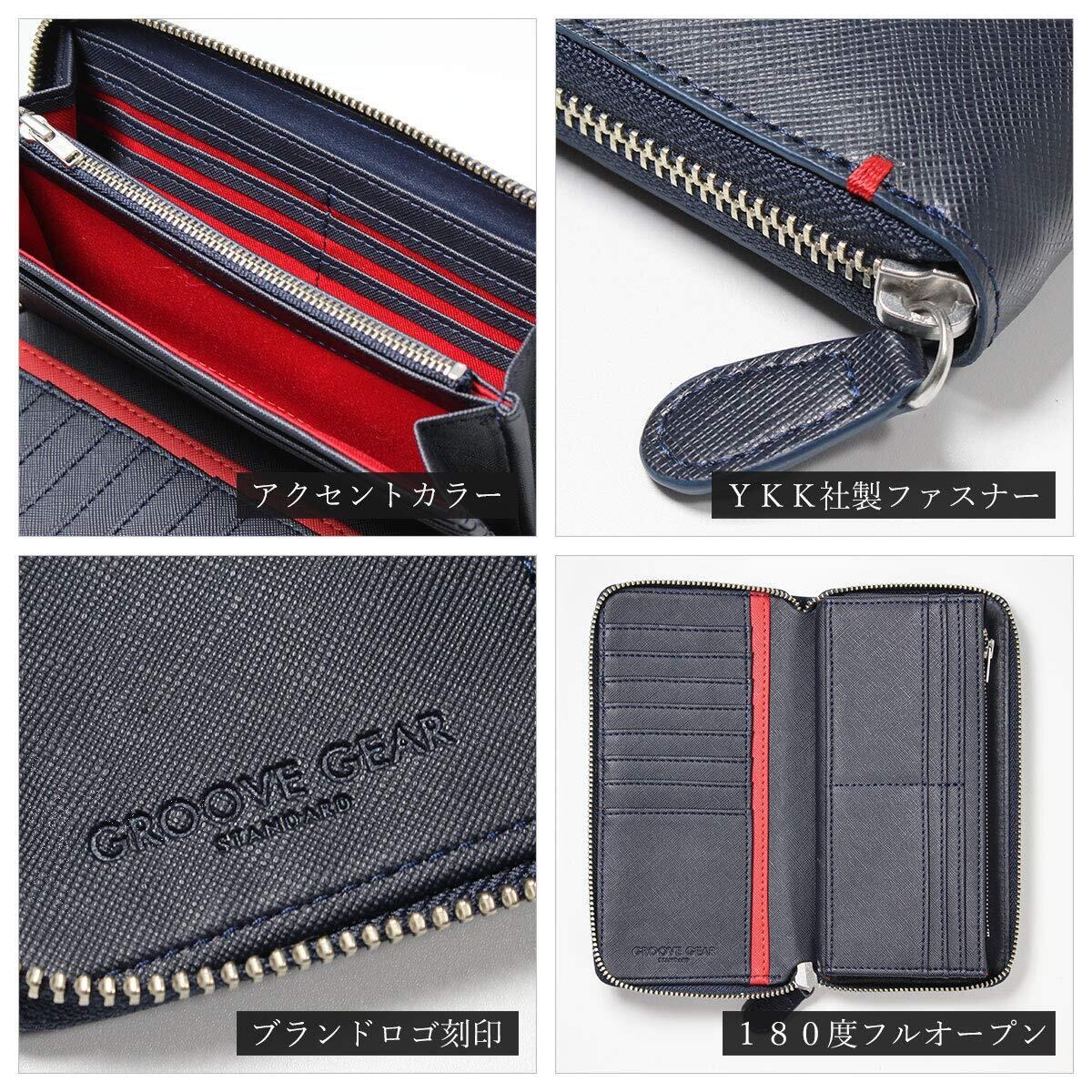 [GROOVE GEAR] 財布 メンズ 長財布 サフィアーノレザー ラウンドファスナー カード20枚収納 大容量 フルオープン 180度開 ggs-1014 ブラック/ブルー
