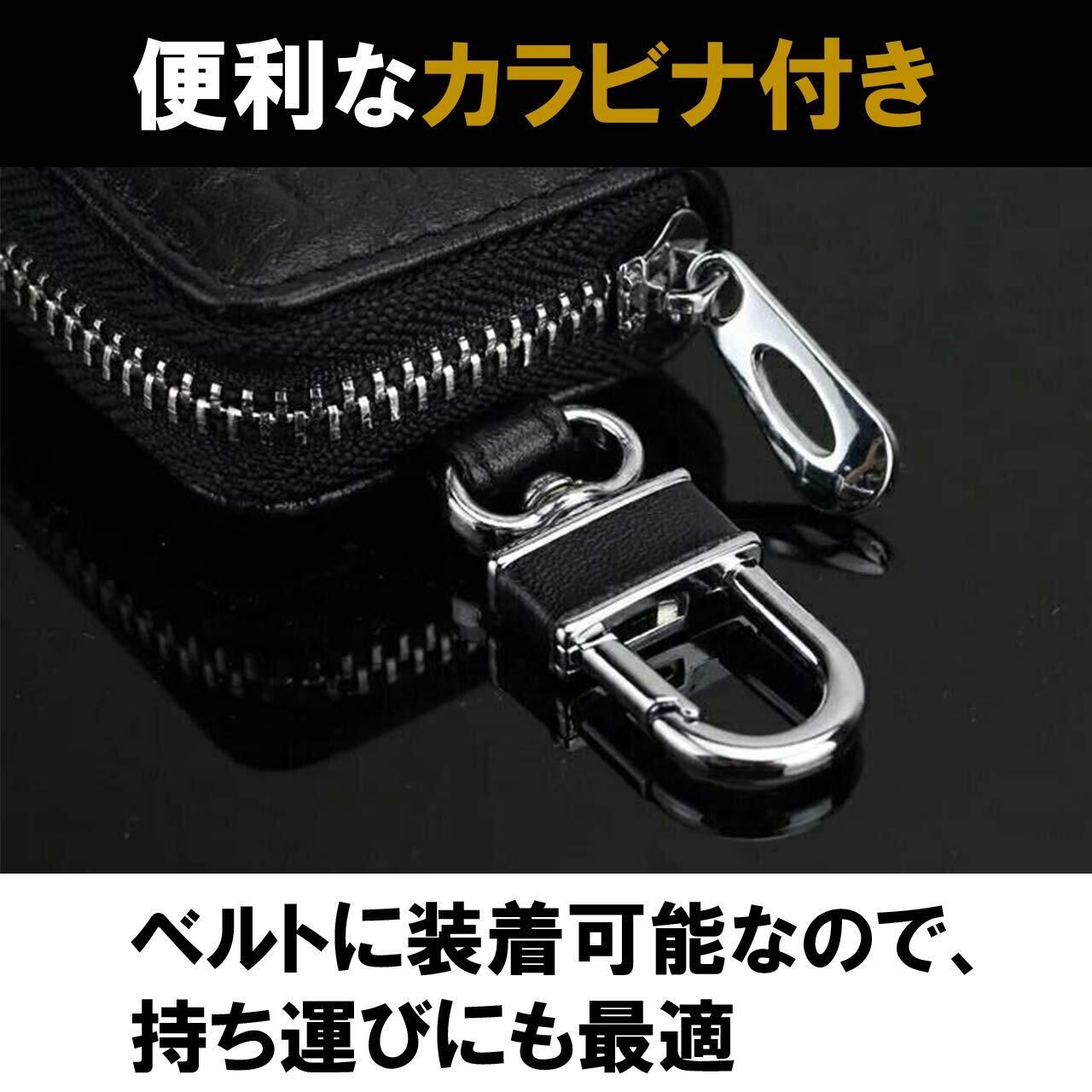 ファスナー付きでしっかりカバー:ファスナー付きのタイプなので、カバンの中で鍵がはみ出したり、他のものを傷つけてしまったりなんてことはありません。カラビナ付きなのでベルトに取り付けることが出来て、持ち運びにも適しています。