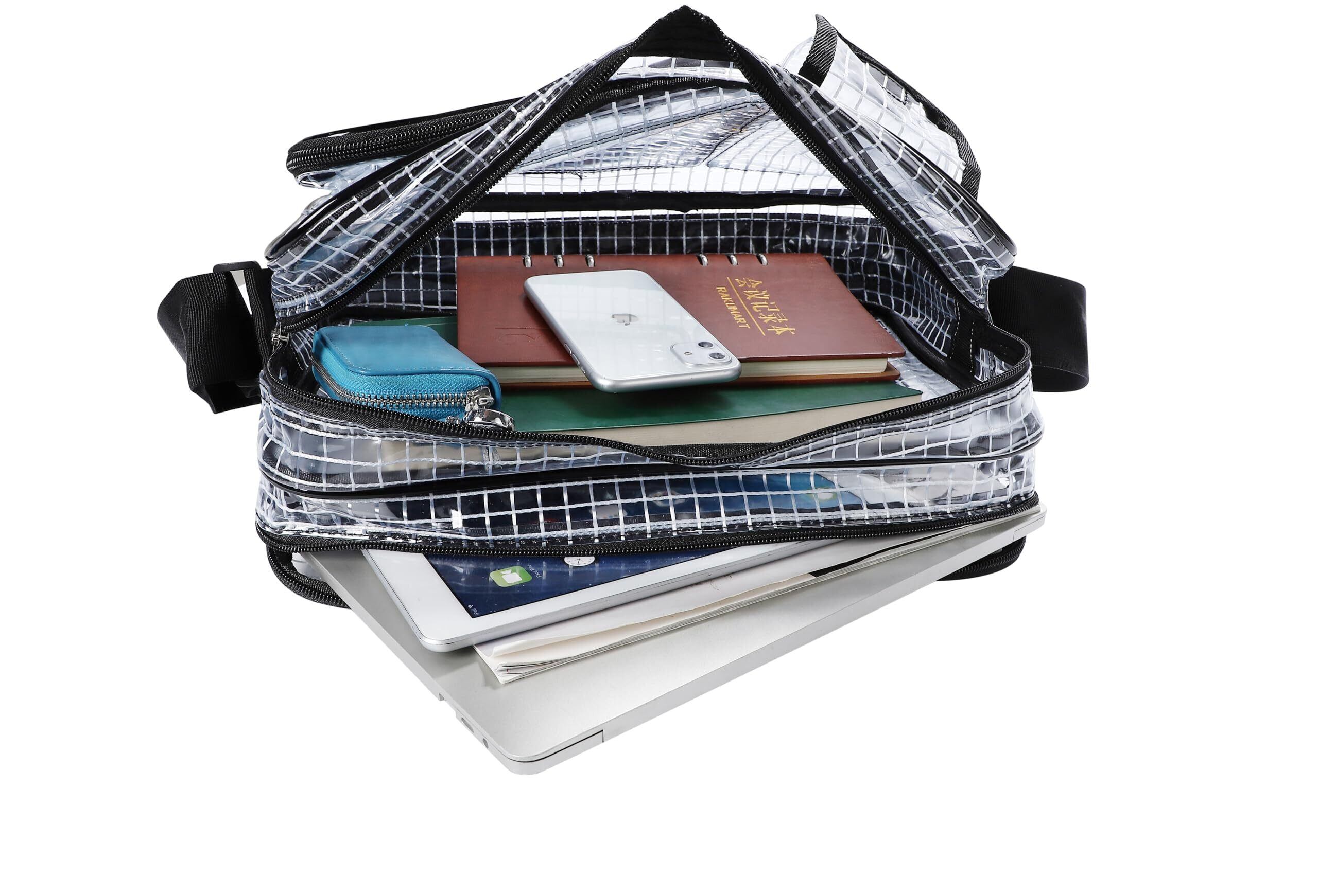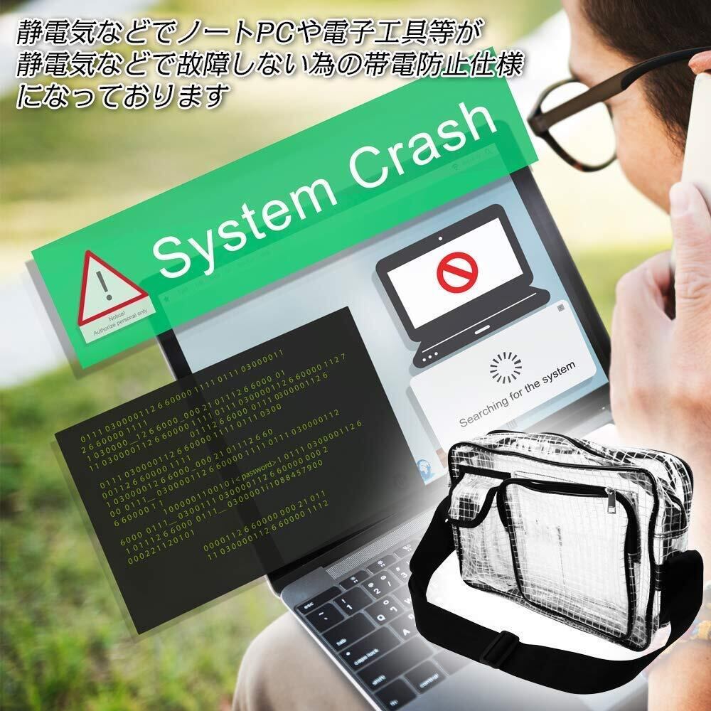 [kitamurasyokai] 透明 エンジニアバッグ ショルダーバッグサブポケット 14インチ 収納 静電気防止 (グリッド)