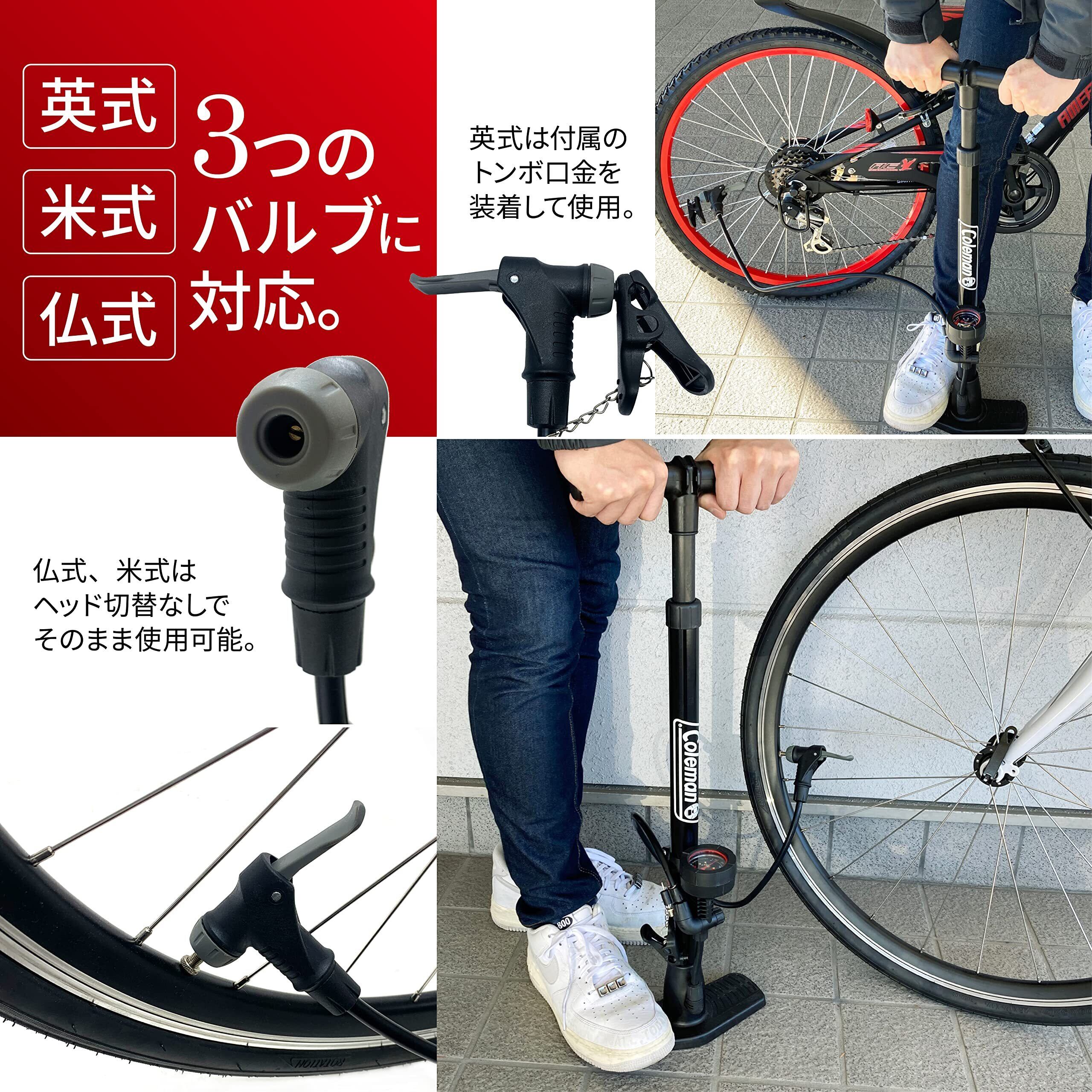 【Amazon.co.jp限定】コールマン(Coleman) 自転車用 空気入れ 圧力ゲージ付き 英式 米式 仏式 バルブ対応 ブラック フロアポンプ