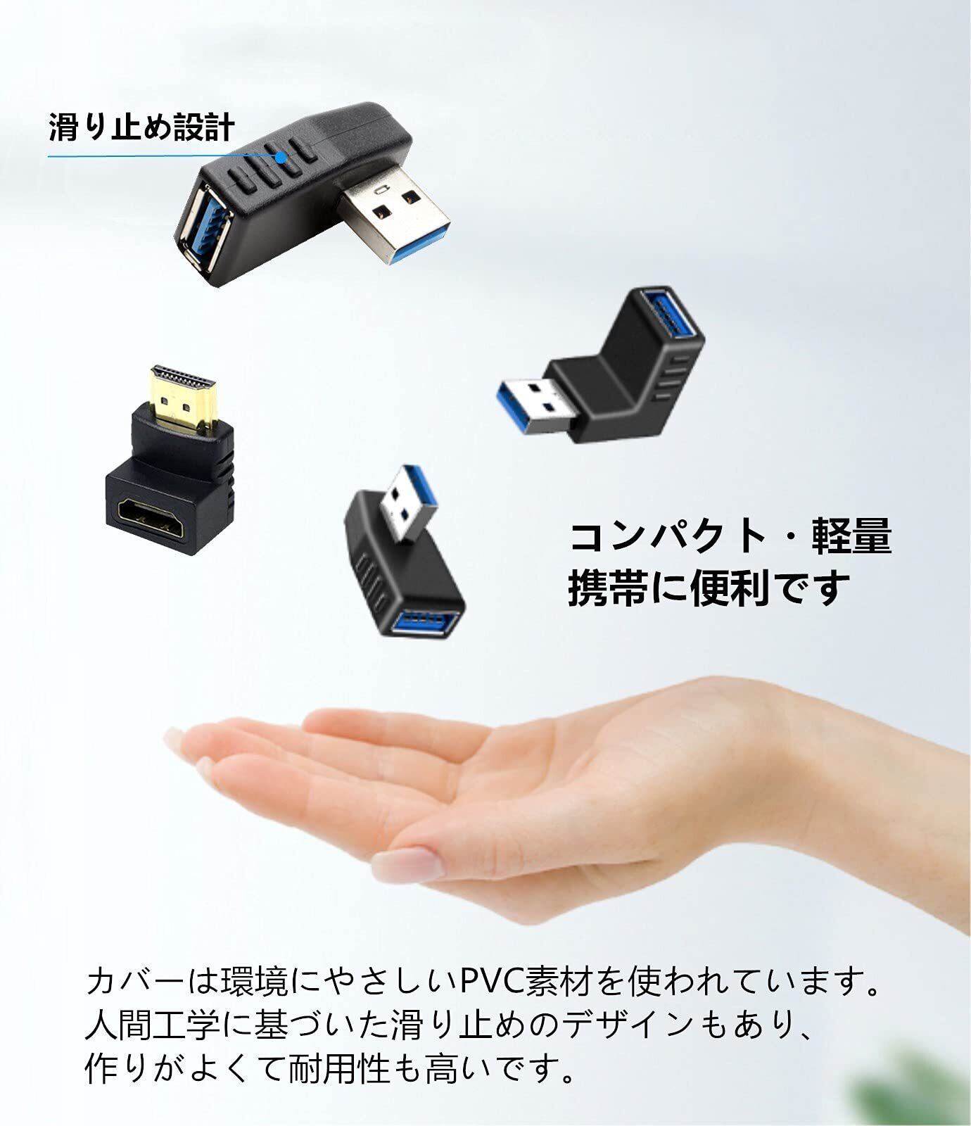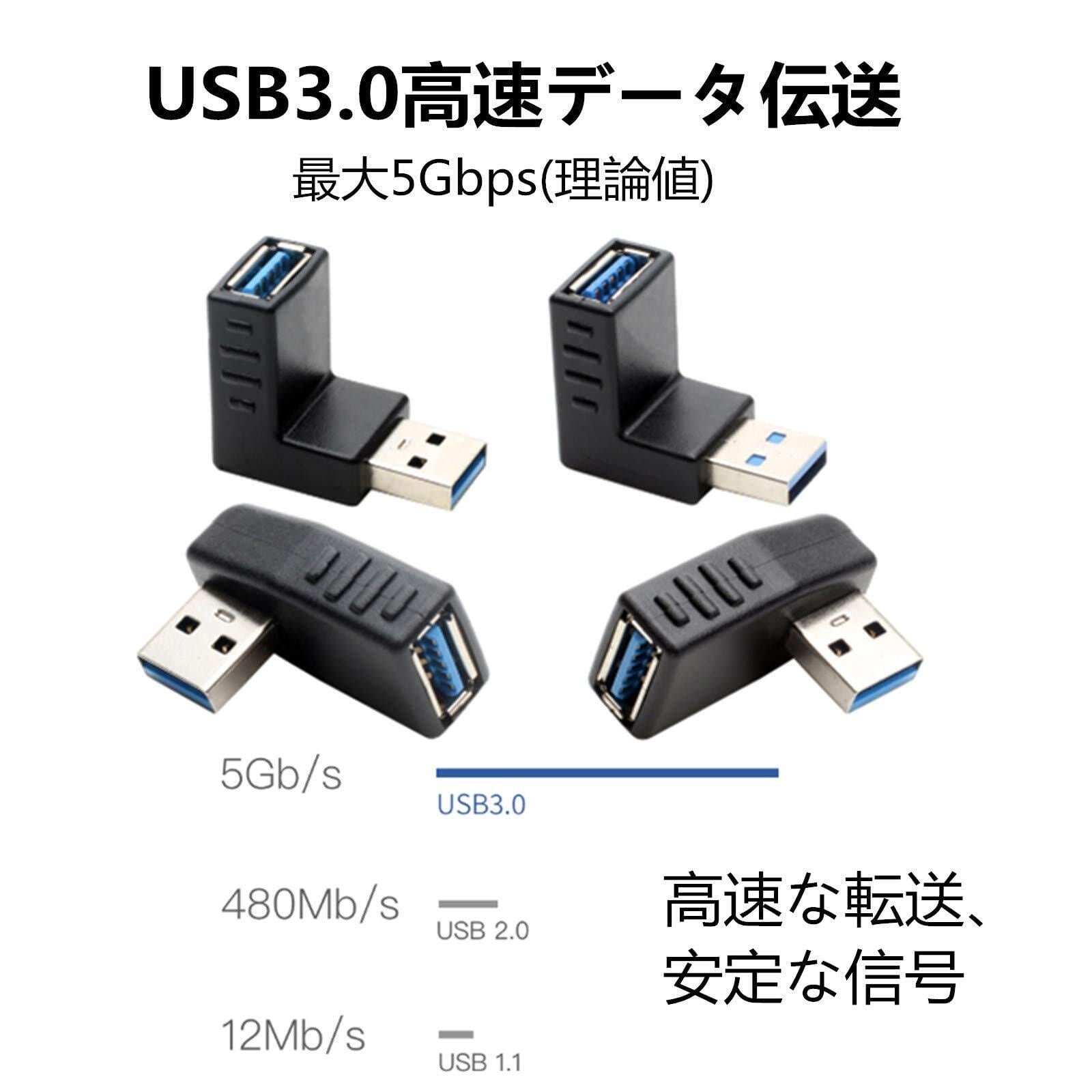 【角度変換/方向変換に】異な向きの4個セットです。角度変換、方向変換,右または左に上または下に曲がる。USBメモリなどの方向を変えられるため、省スペース可に役立ちます。方向を90度変え、狭い場所でも簡単に接続できます。
