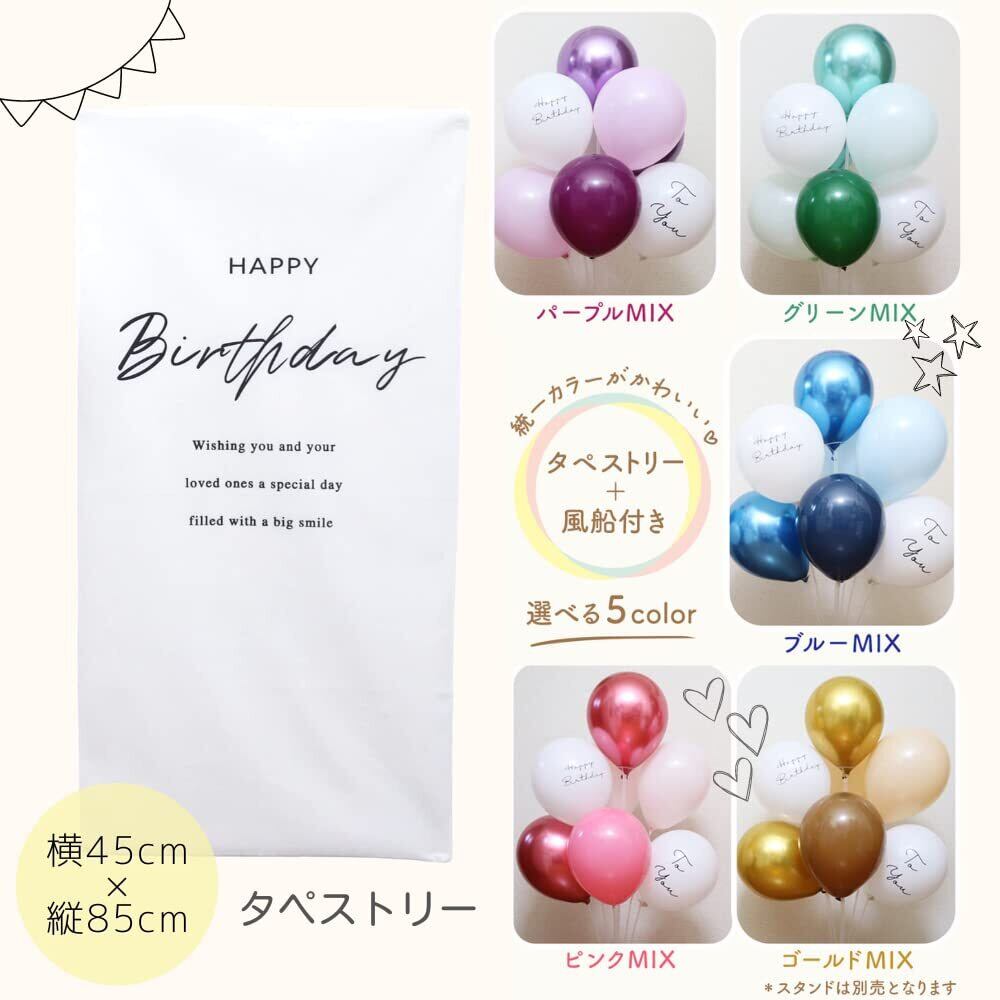 【数量限定】La Kissa タペストリー 誕生日 飾り付け 男の子 女の子 バースデー バルーン付き 風船 シンプル おしゃれ おうちスタジオ((誕生日, グリーンMIX) | Premium Stage