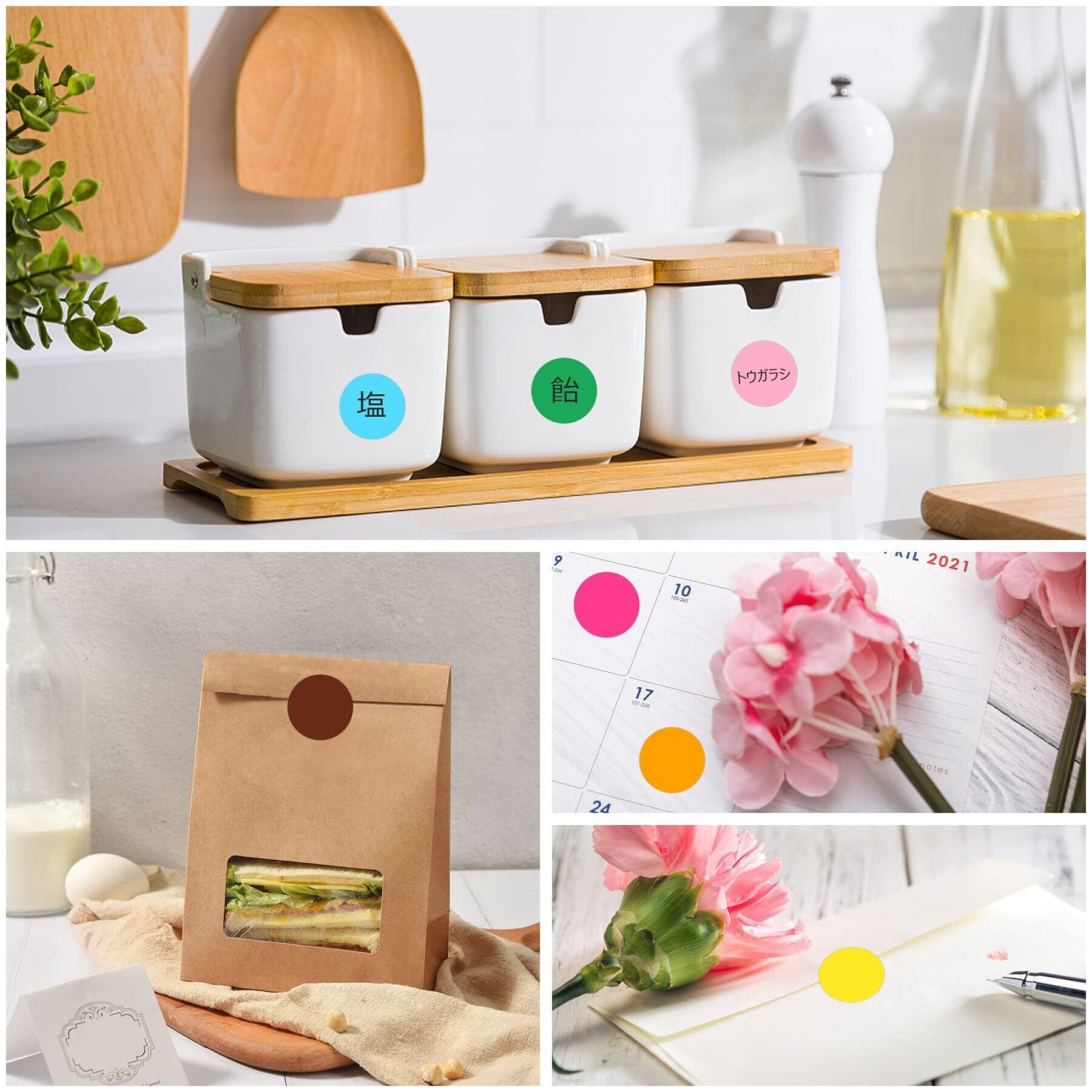 用途:明るい多彩な丸型ラベルは、さまざまな用途があります。ファイルやDVDや書籍などの整理に使います。便利な丸型シールが収納箱、瓶、ボトル等にしっかりとくっつきます