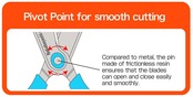 ●軽く切れる秘訣は長さの違う2つの刃! ! 長さの違う2枚の刃がすり合うことで引き切り効果が働きます。