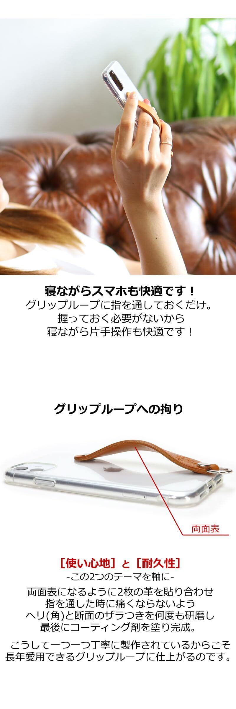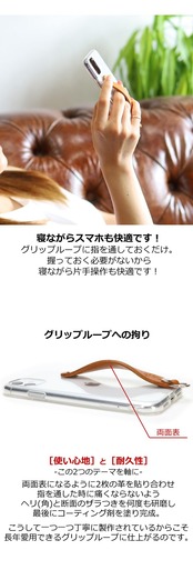 クリアのTPUケースをベースに、スマホのディテールを崩さずグリップループの機能をプラスしたシンプルグリップケース。サッと指を通すだけで、スマホを楽にホールドでき様々なシチュエーションで活躍してくれること間違いなしのケースです!