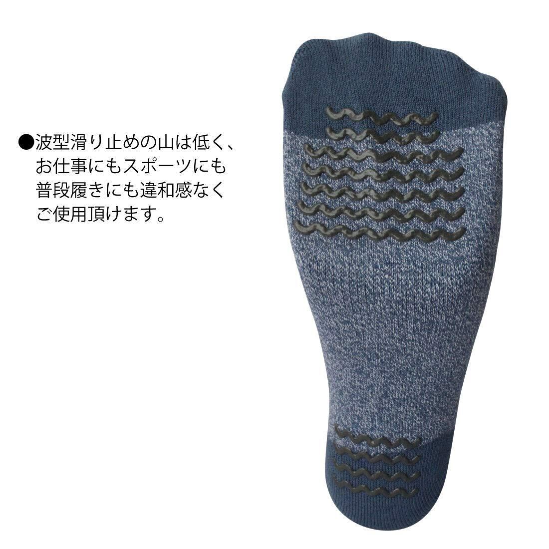 涼しさ抜群の甲部分メッシュ編みショート丈靴下。足底はクッション感抜群のパイル編み靴下に滑り止め加工を施して滑りにくくしっかりグリップ。 高級コーマ綿糸を使用し、ソフトでリッチな肌触り。通気性もよく蒸れにくい。 波型すべり止めの山は低く。お仕事にもスポーツにもジムや普段履きにも活躍します。 踏ん張りのきくすべり止め付きでフローリングの上で作業をされる方、引越し業者の方や建材業者の方、電気関係、介護職のお仕事の方に特にオススメです。足底のパイル編みのクッション感で安全靴にも快適です。 先丸 3足組 サイズ:24.5〜27cm カラー:ブルー、ネイビー、ブラック 品質:綿、ナイロン