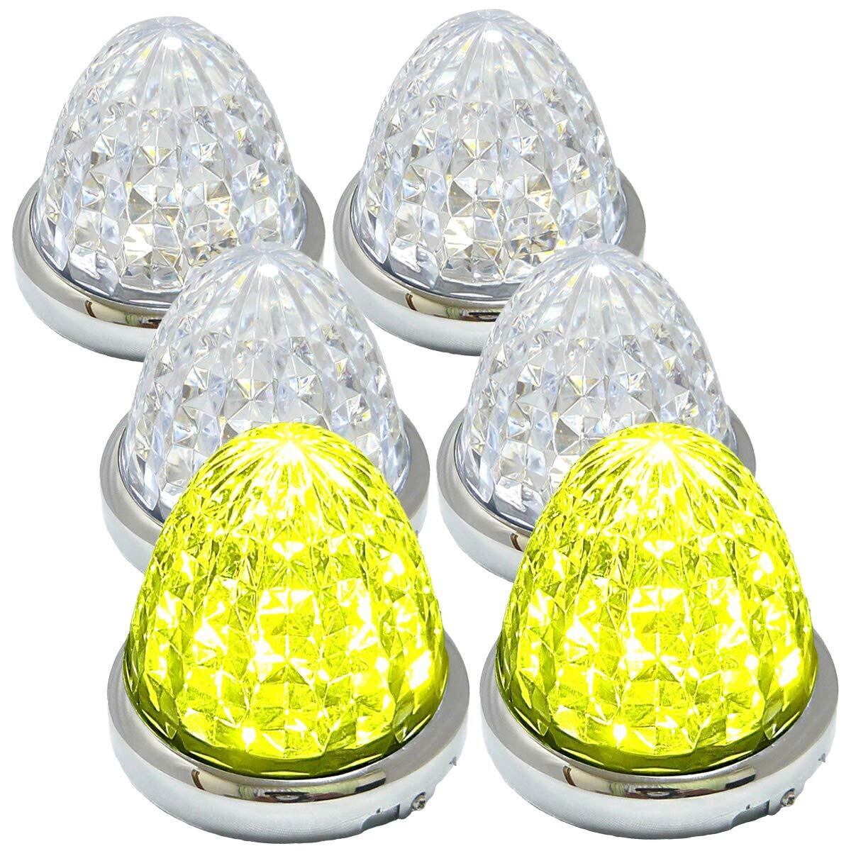 Customize 24V トラック用 LED マーカーランプ サイド マーカー 8面クリスタルカット仕様 16LED メッキリング 汎用 6個 セット ブルー/イエロー/レッド/ホワイト 各色 (イエロー 特注色)
