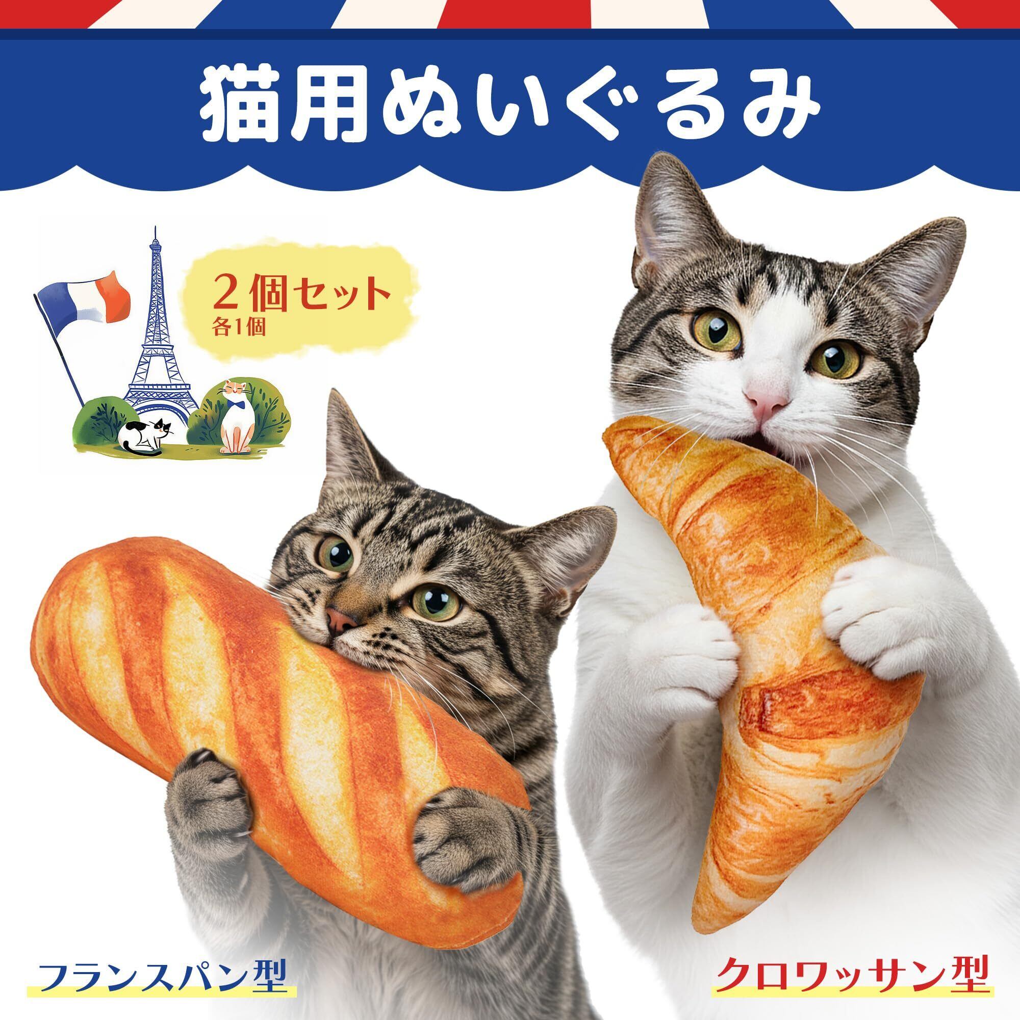 猫の友社 猫用 ぬいぐるみ 玩具 またたび パン 2個 セット フランスパン クロワッサン おもちゃ プレゼント ギフト