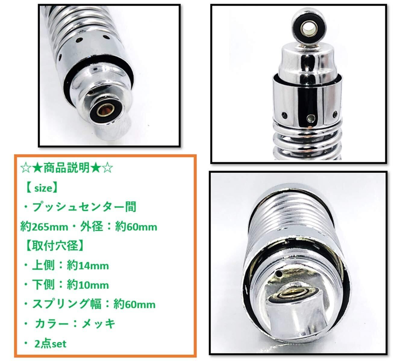 バイク 265mm リア サスペンション ショート リアショック メッキ ビラーゴ125 ビラーゴ250 MC13 マグナ SR400 SR500 SRV250 VOLTY ドラッグスター250 W650 W400 グラストラッカー