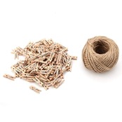 ウッドクリップ 木製洗濯ばさみ フォトクリップ 木製クロスピン 自然色 250個+50m麻紐付き セット 装飾 写真 メモ ノート 書類 付箋用