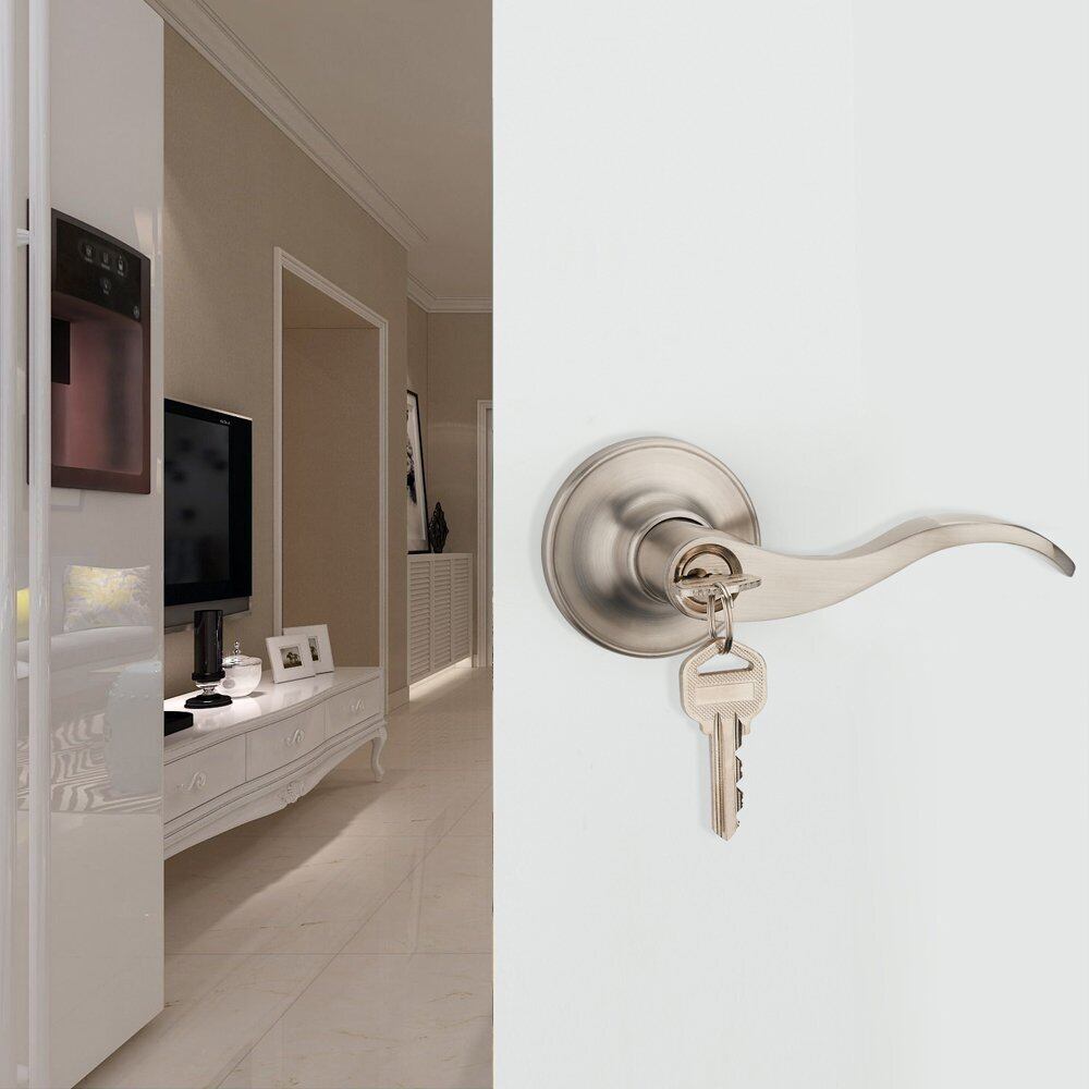 JUNXU レバーハンドル錠は、玄関ドア、パッセージ、浴室(キー付き), 製品色、銀,右手ドアのみ (JX805-R)