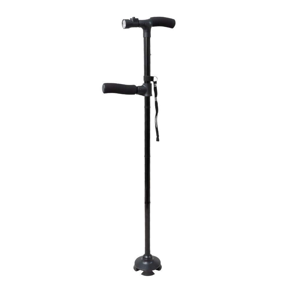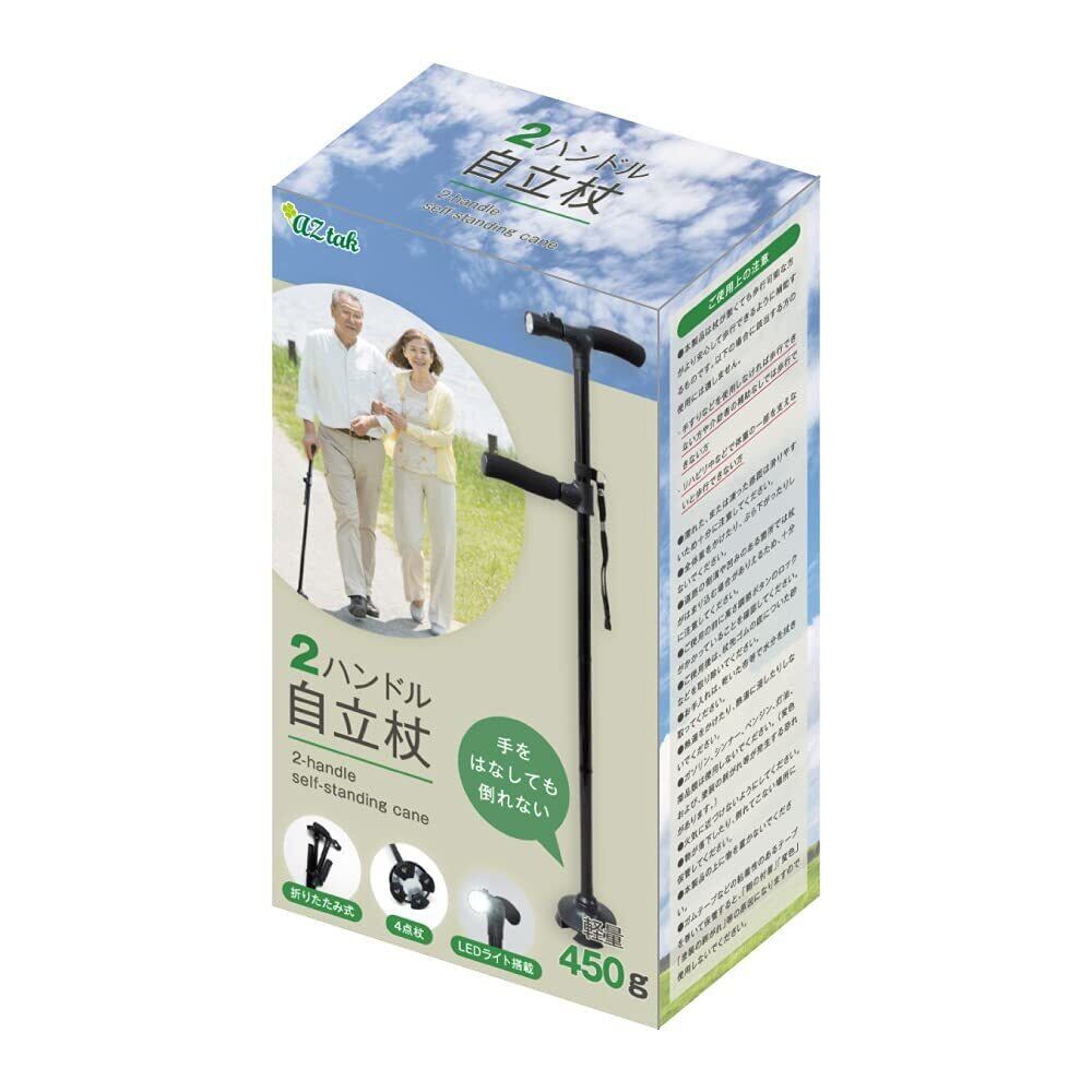 【新春セール】安住商事 自立式ステッキ 杖 折りたたみ式 室内杖 ツイングリップ ダブルハンドル 4点支柱 LEDライト搭載 散歩 ギフトに 福祉用具 テスト電池付属 日本語説明書&保証書付き | Premium Stage
