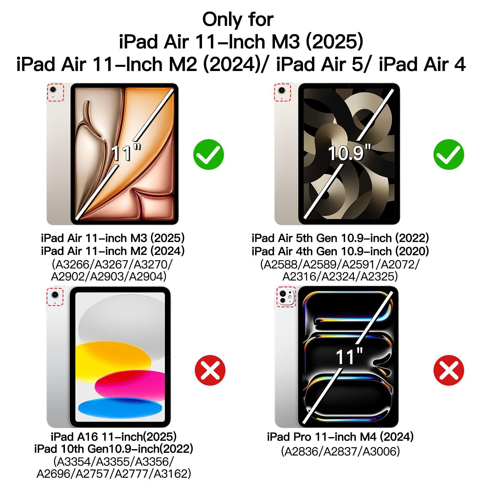 [互換性] Pencil Pro/Pencil(USB-C)に対応。iPad Air 11インチ M3/M2 (2025/2024) 、iPad Air 5/4用(2022/2020、第5/4世代、10.9インチ)の特別デザインです。対応モデル:A3266 / A3267 / A3270 / A2902 / A2903 / A2904 / A2588 / A2589 / A2591 / A2324 / A2072 / A2316 / A2325。おデバイスの裏面にあるモデル番号をご確認ください