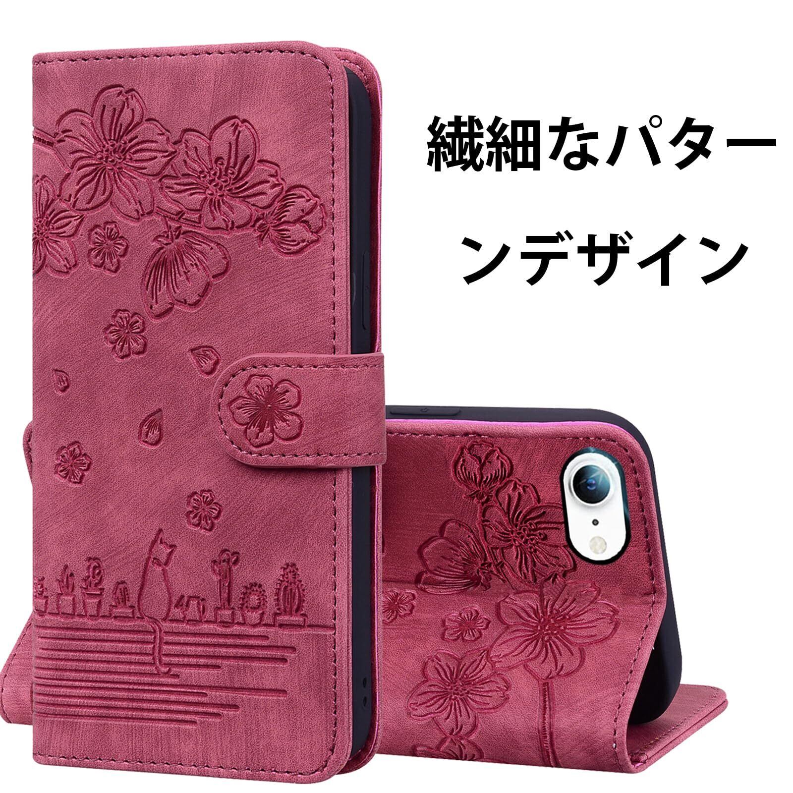【iPhone se 第3世代 ケース 手帳型】 iphone8 ケース 手帳型 iphone se スマホケース iphone se2 ケース 手帳型 iphone7ケース 衝撃保護 プレミアムPUレザー スマホケース 財布型 カード収納袋 角度調整可能なスタンド 持ち運びに便利なリストストラップ 桜柄マグネットバックル [4.7インチ][レッド]