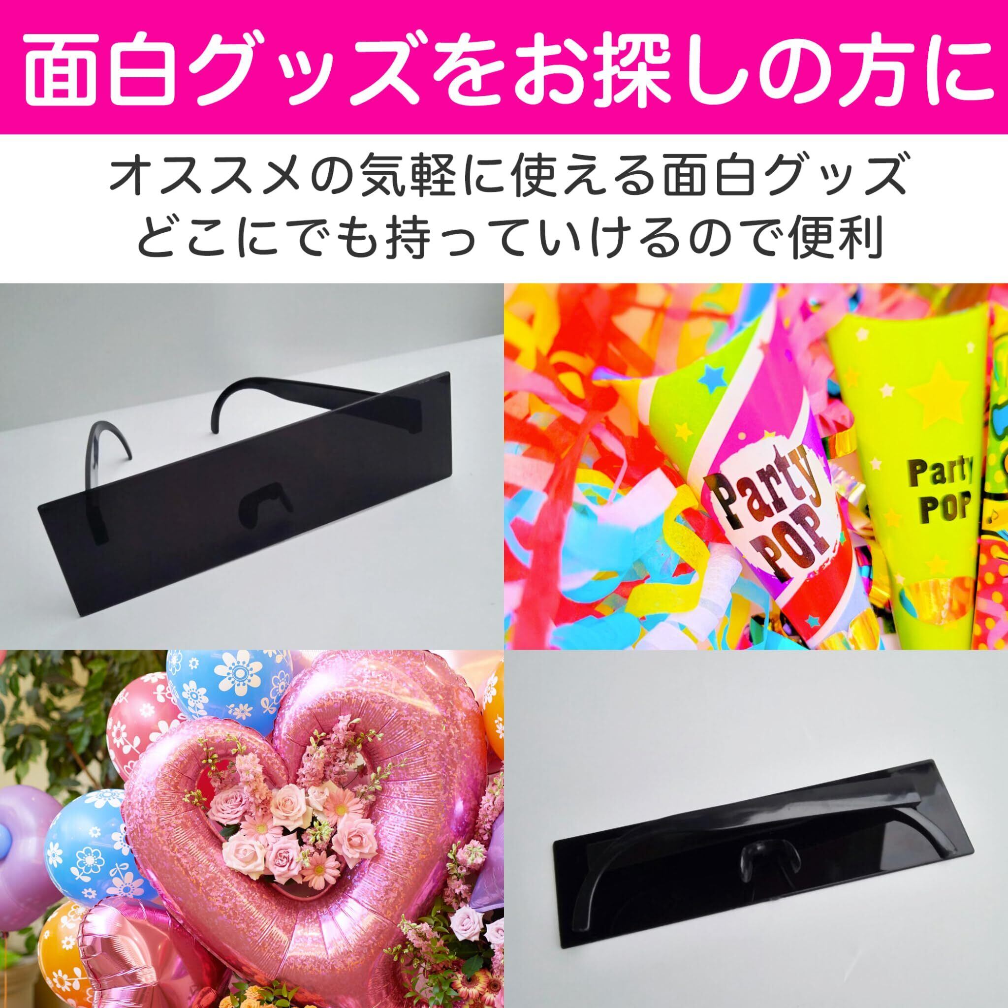 ユニークで面白いデザイン:サングラスをかけている姿を見るだけで思わず笑ってしまうようなユニークで面白いデザインなので、パーティーや二次会を盛り上げたい時にピッタリです。