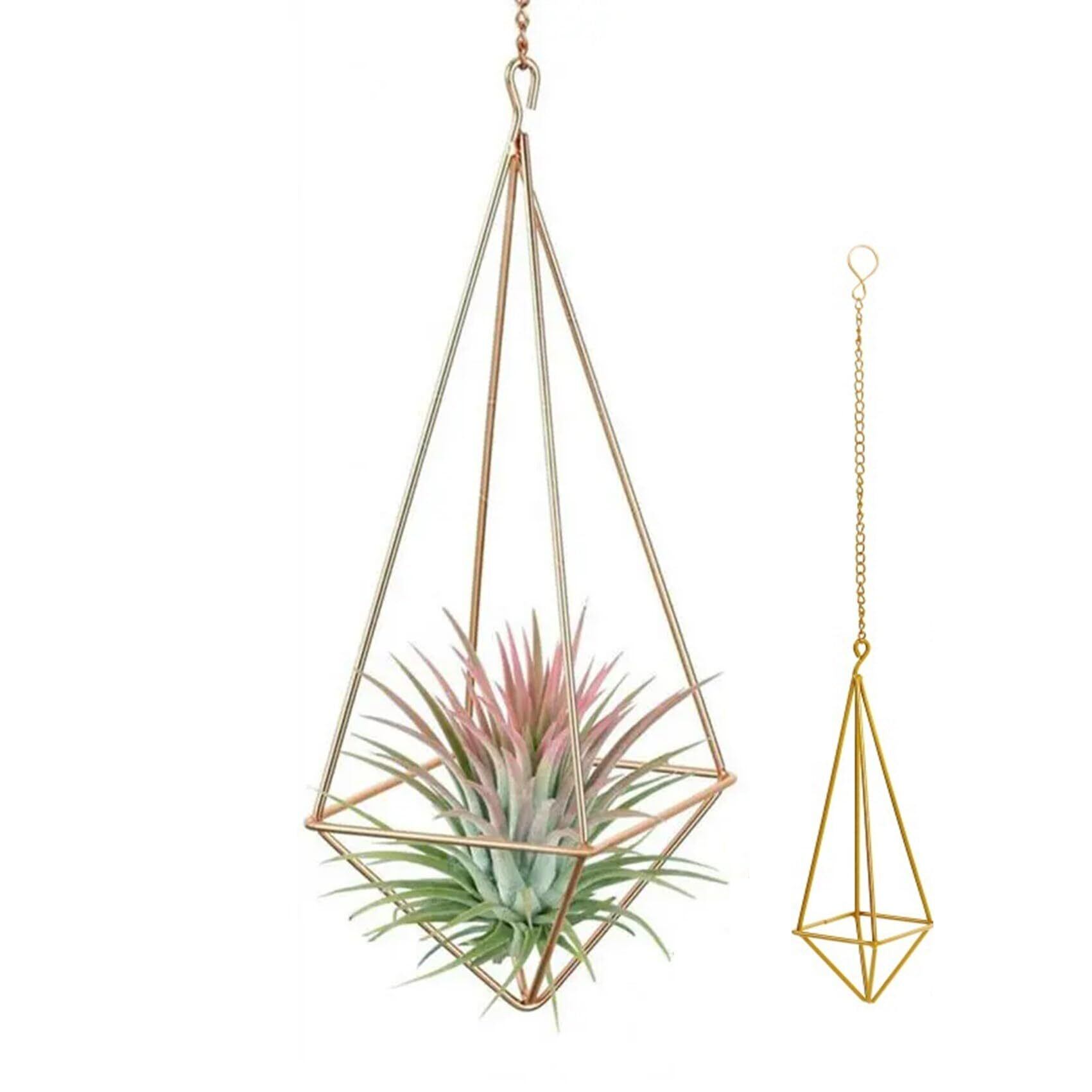NOELAMOUR プラントハンガー アイアン エアプランツ ホルダー 吊り下げ フラワースタンド 園芸ラック 屋内屋外 全長48.5×幅8cm (ゴールド)