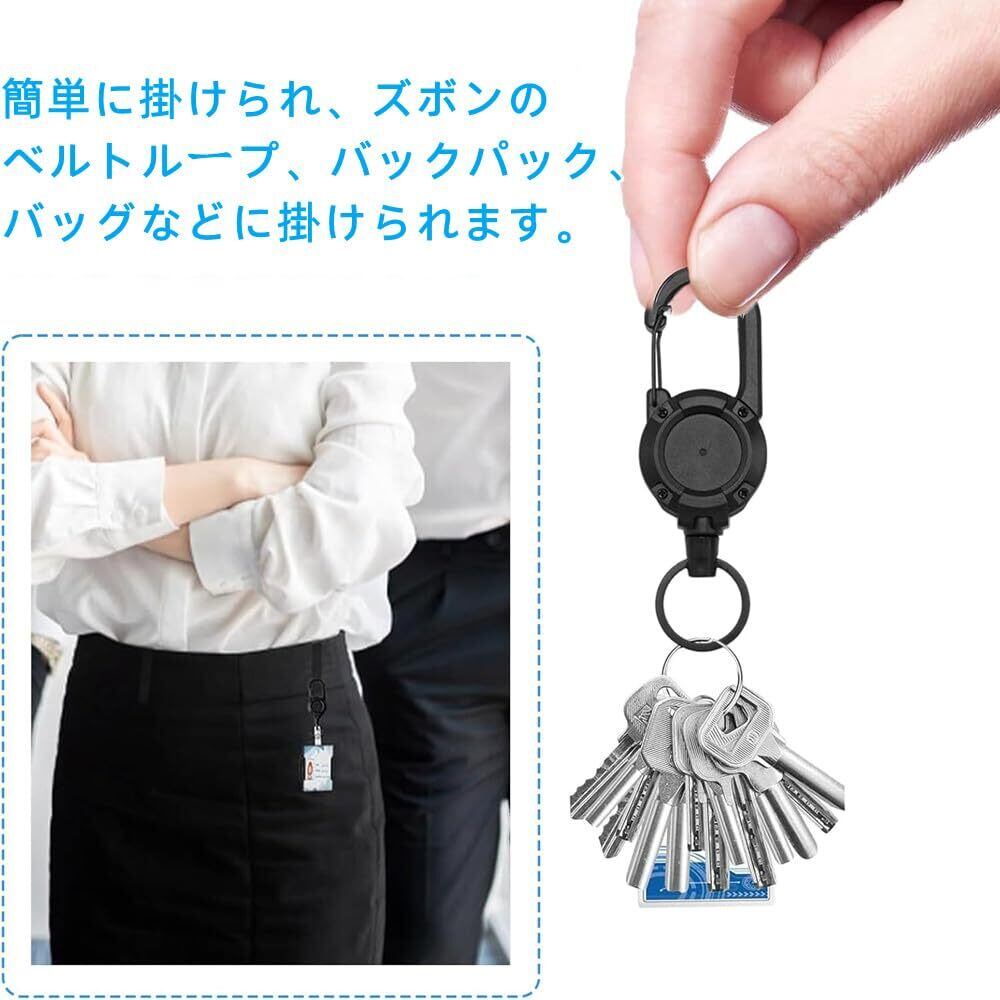 リールキーホルダー 2個セット カラビナ キーチェーン 金属製吊り輪 ワイヤーロープ 伸びる 最長伸縮60cm 頑丈 強力 落下防止 紛失防止 軽量で持ち運びに便利 釣り登山最適